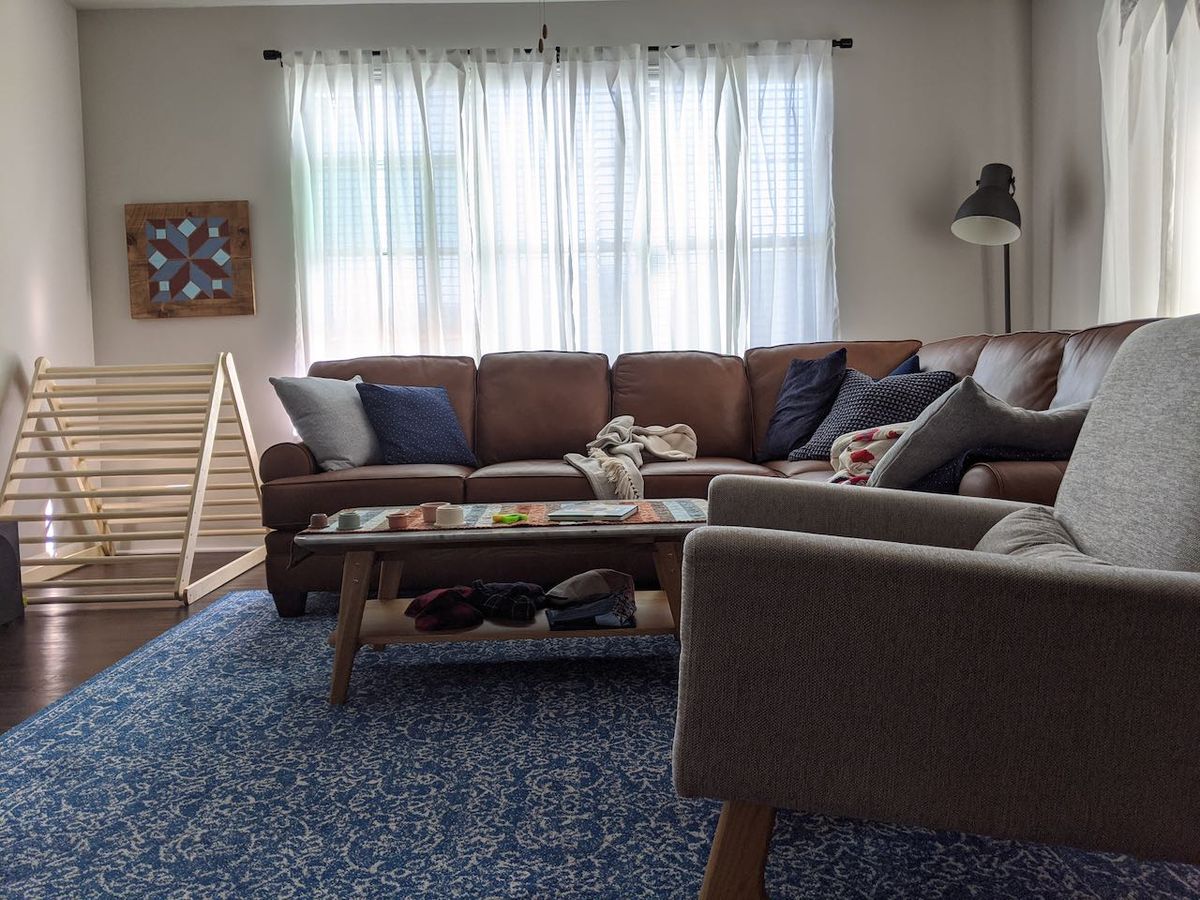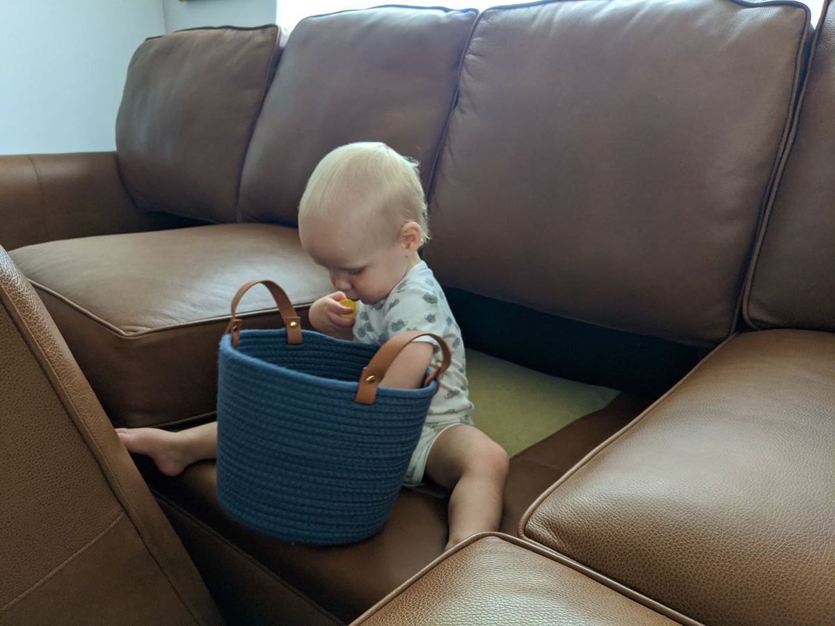 Turning the couch into a jungle gym by removing a few cushions here and there.