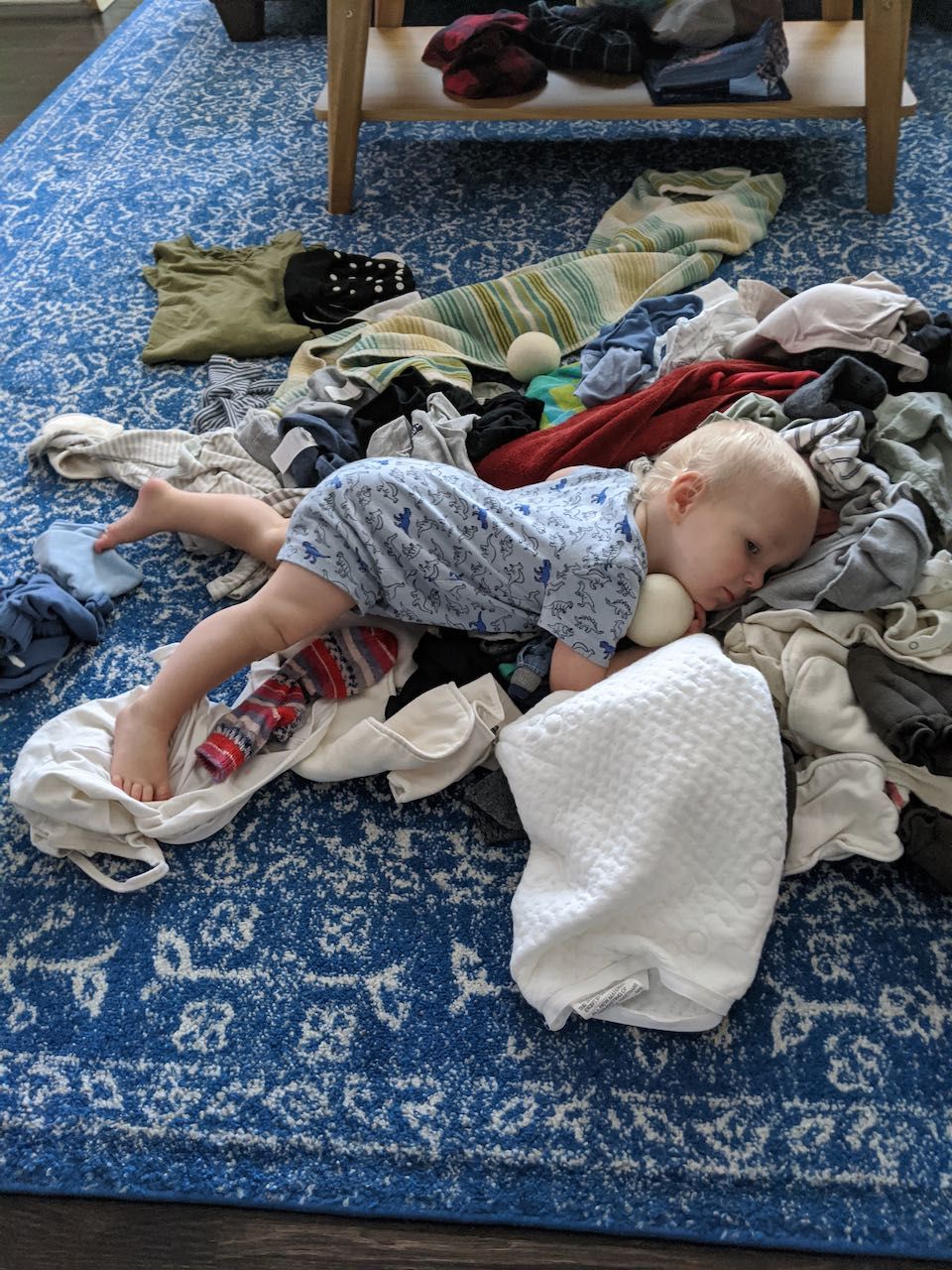 Finding evidence in the bottom of the laundry basket that a certain toddler was helping me fold clothes.