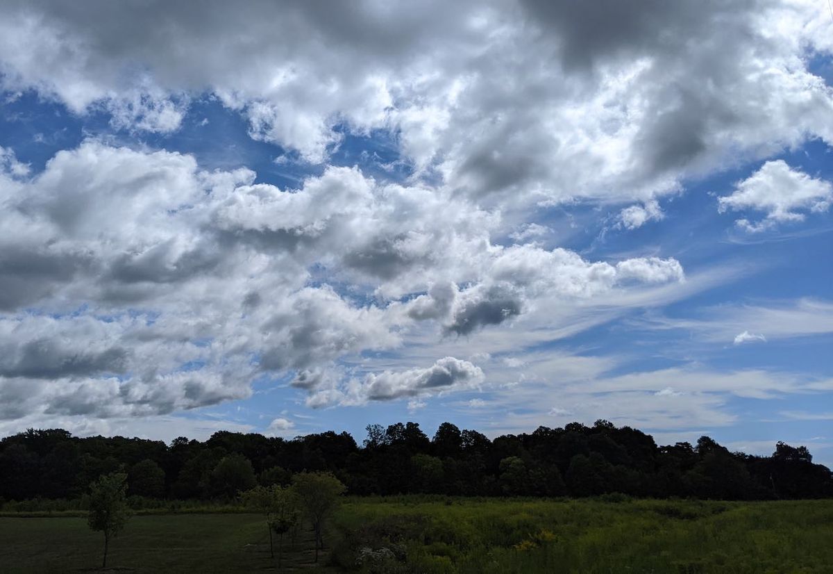 Fluffy clouds and pretty skies on walks. I love the paths so near our home.