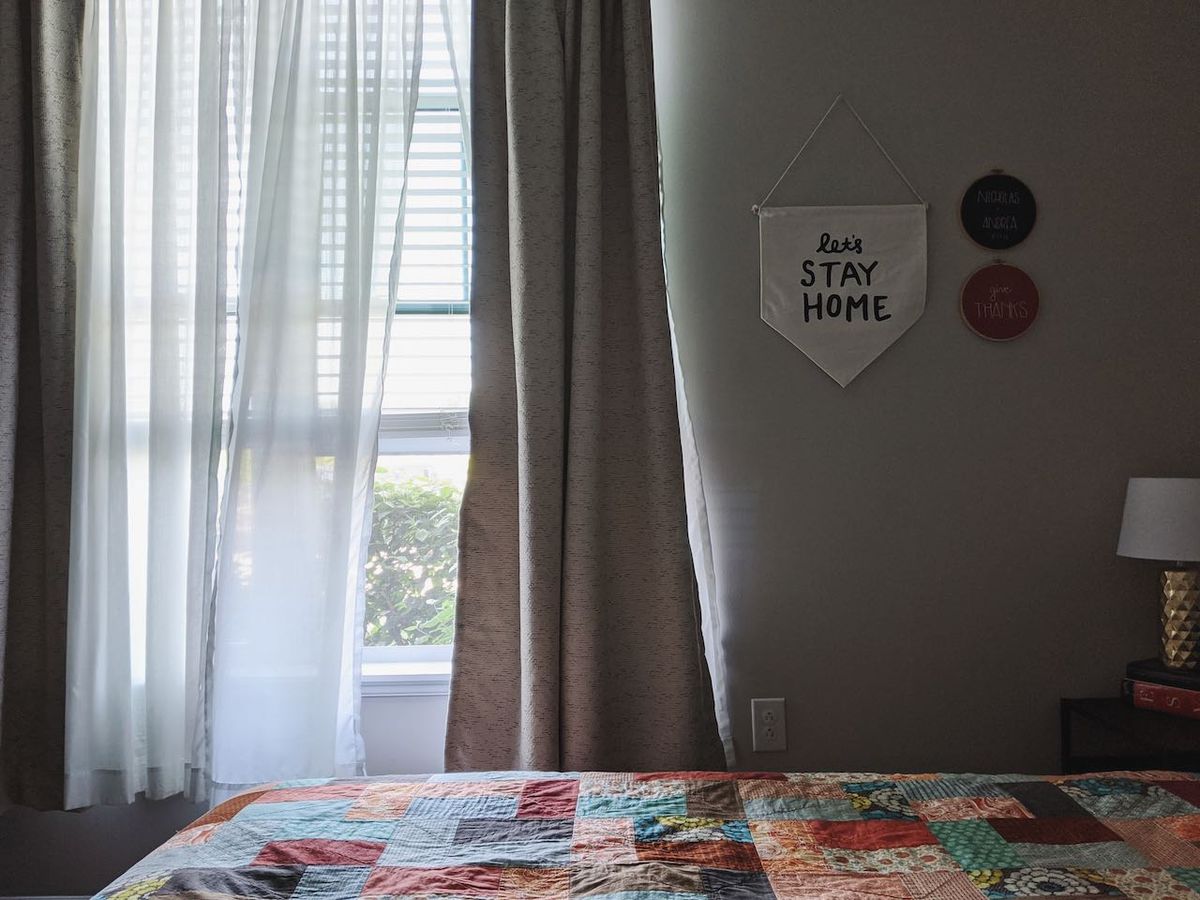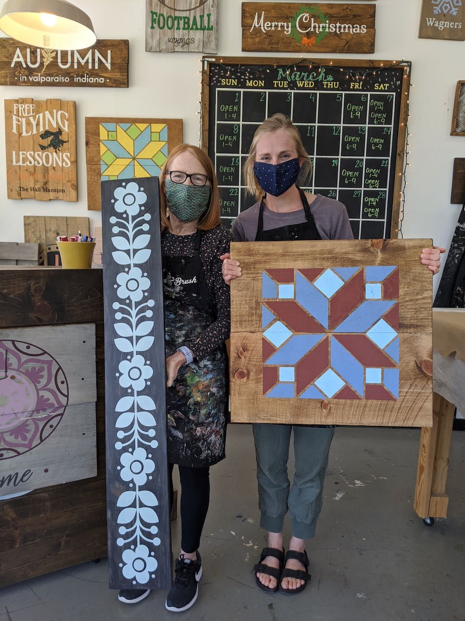 I went to a Board and Brush class with my MIL (it was a gift for Mother's Day last year!) we were the only ones in the class and we wore masks. Such a fun afternoon! I loved how our projects turned out. Mine is now hanging in our living room.