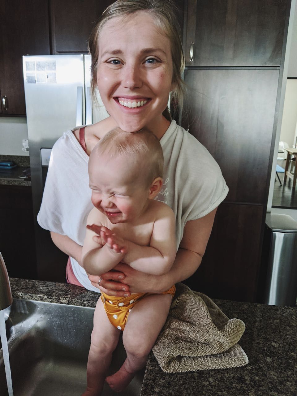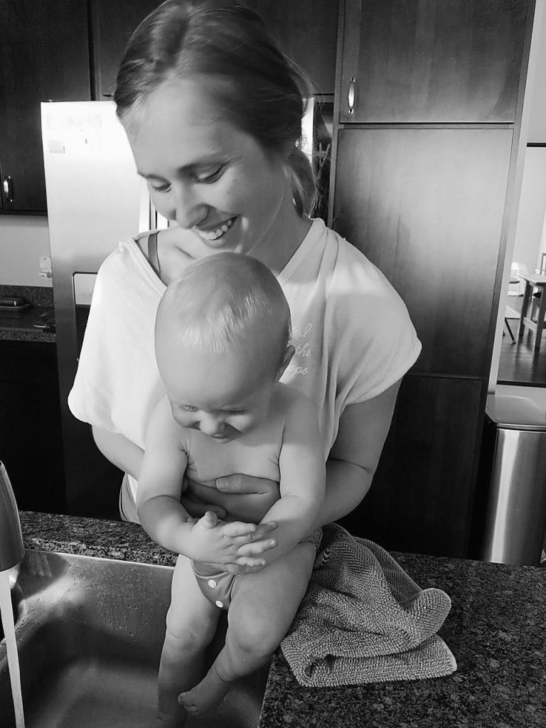 Giving Cooper sink baths after meals because when you're one, eating is messy (and that's okay!) Also, water of every kind is fun (see below).