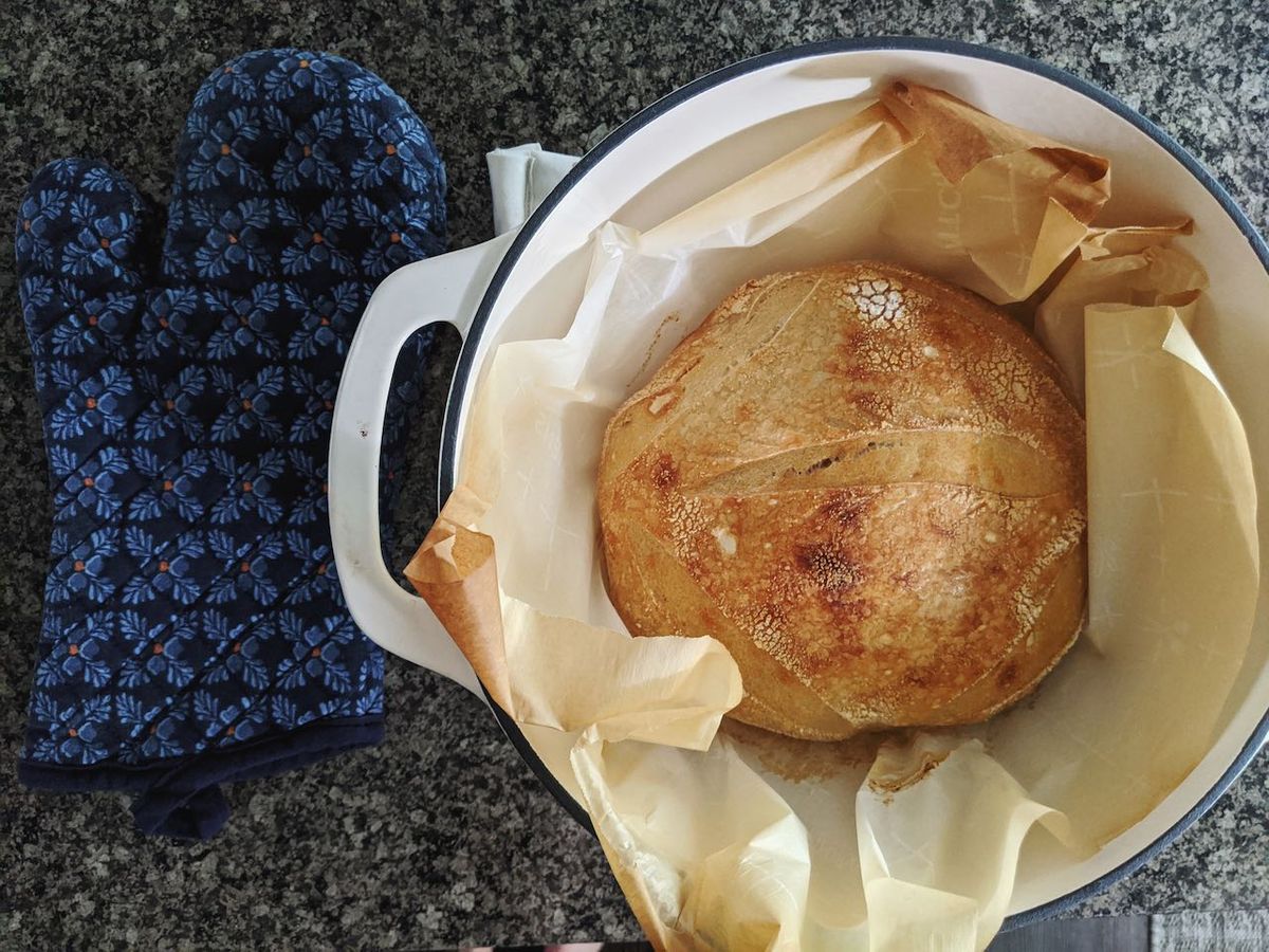 Baking sourdough, usually once a week, or once every other week. I still have a lot to learn, but the loaves have all tasted good.