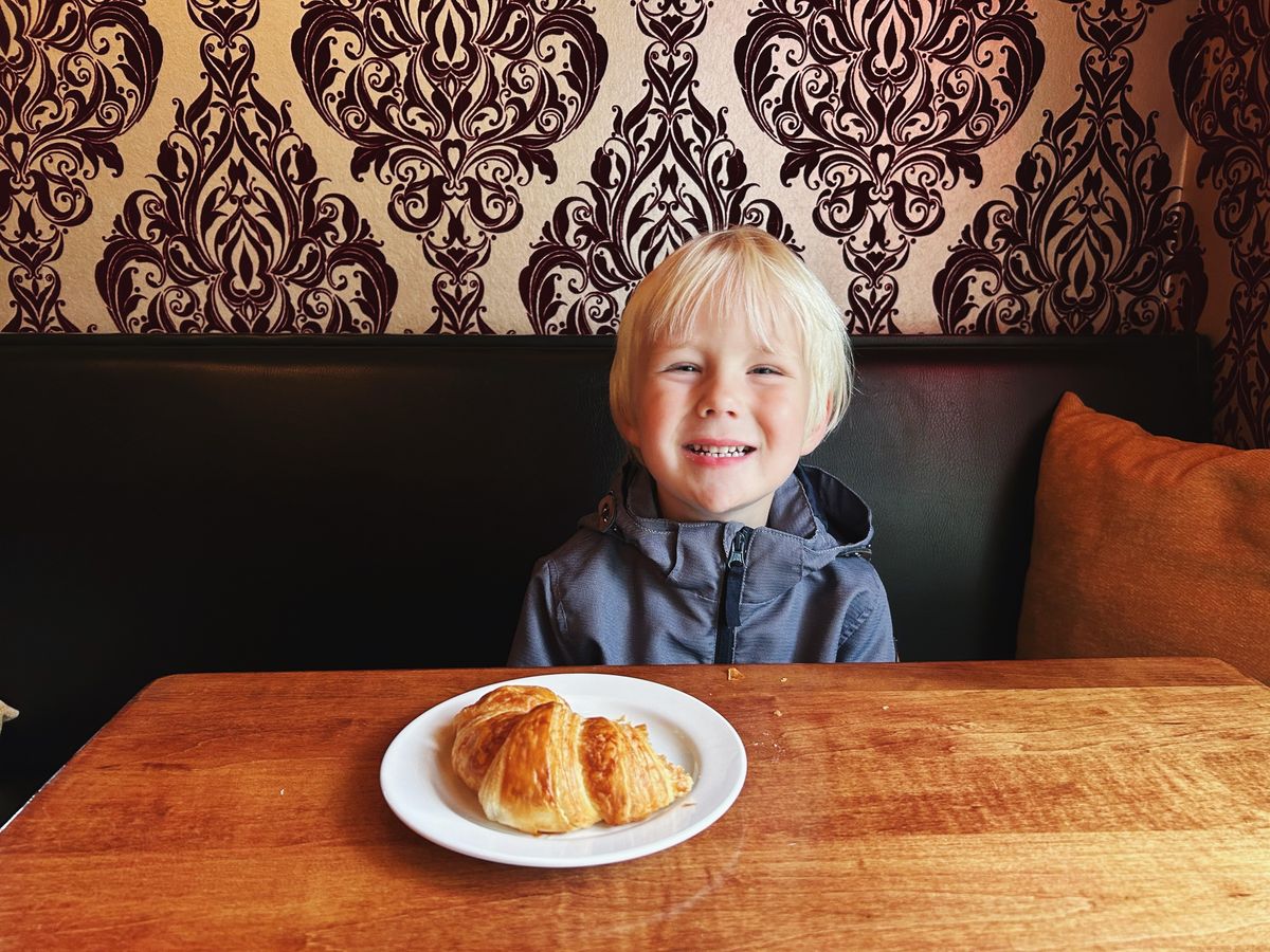 I went on a date at a local bakery with my boys, after picking up our raw milk and cheese. Cooper wanted his favorite butter croissant.