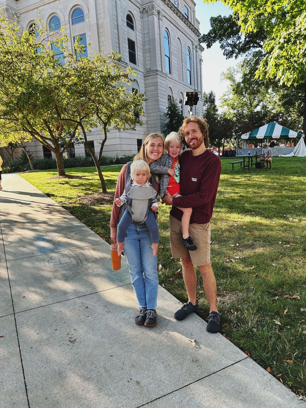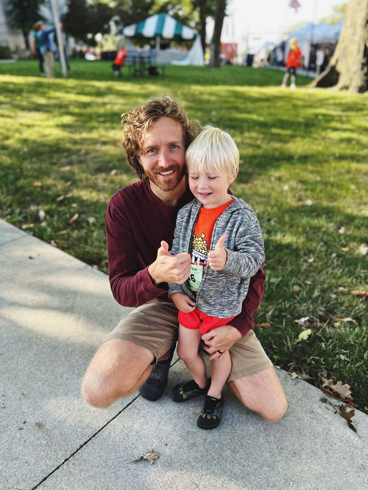 Cooper ran in a local kids' race at our local festival. He wore his "fast shorts" and his "fast shoes" (truly, that's what we always call them) and was very stoic, but he had so much fun! Every kid gets a little ribbon and a t-shirt, and it's chaotic, but fun.