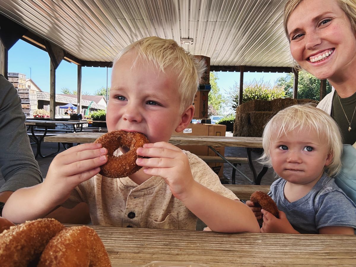 And last weekend, we visited a local apple orchard! We rode in a horse-drawn wagon and picked Golden Delicious and Honeycrisp apples. It was a warm, breezy, and sunny morning, and we wrapped it up with some donuts. The perfect way to celebrate the first official day of fall.