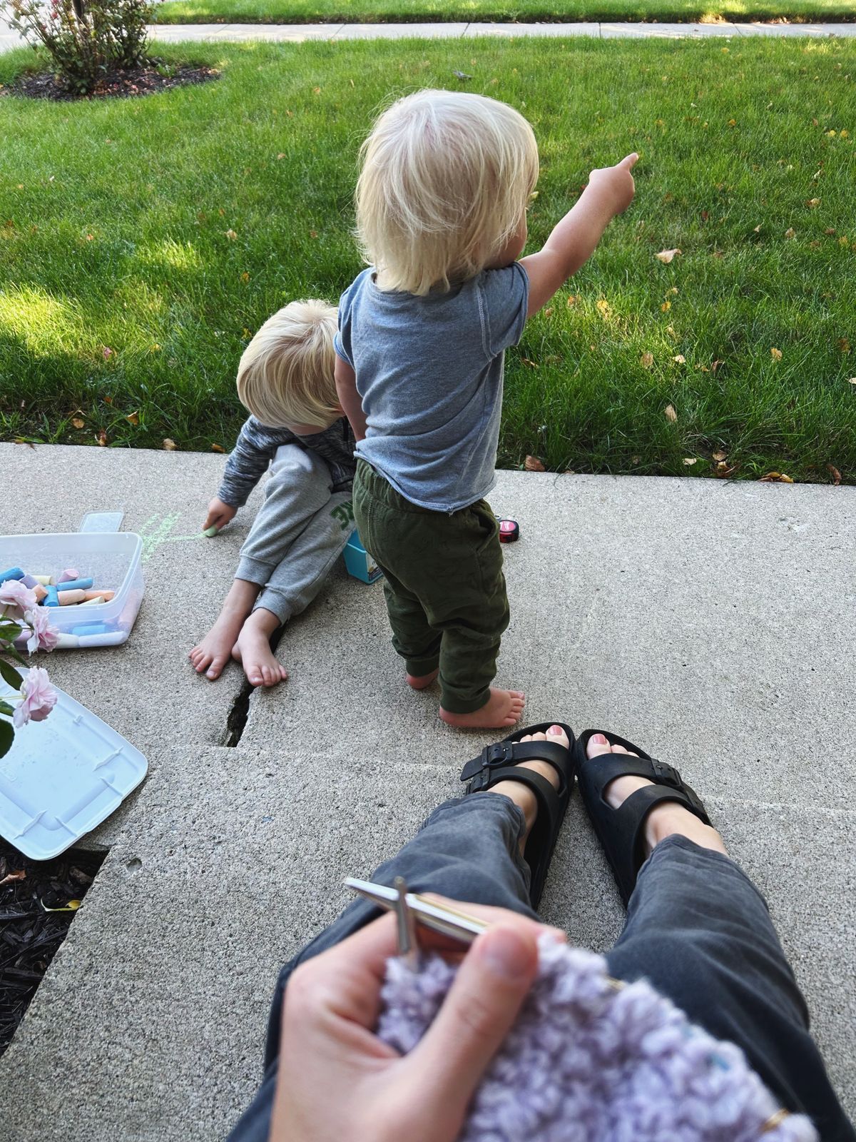 We worked on puzzles, went on family walks, visited our local library, played with friends, knitted at home and on-the-go, drew with sidewalk chalk, checked on the huge, pink dahlias in the garden (finally blooming!) and went on outdoor coffee dates, followed by hikes with friends.