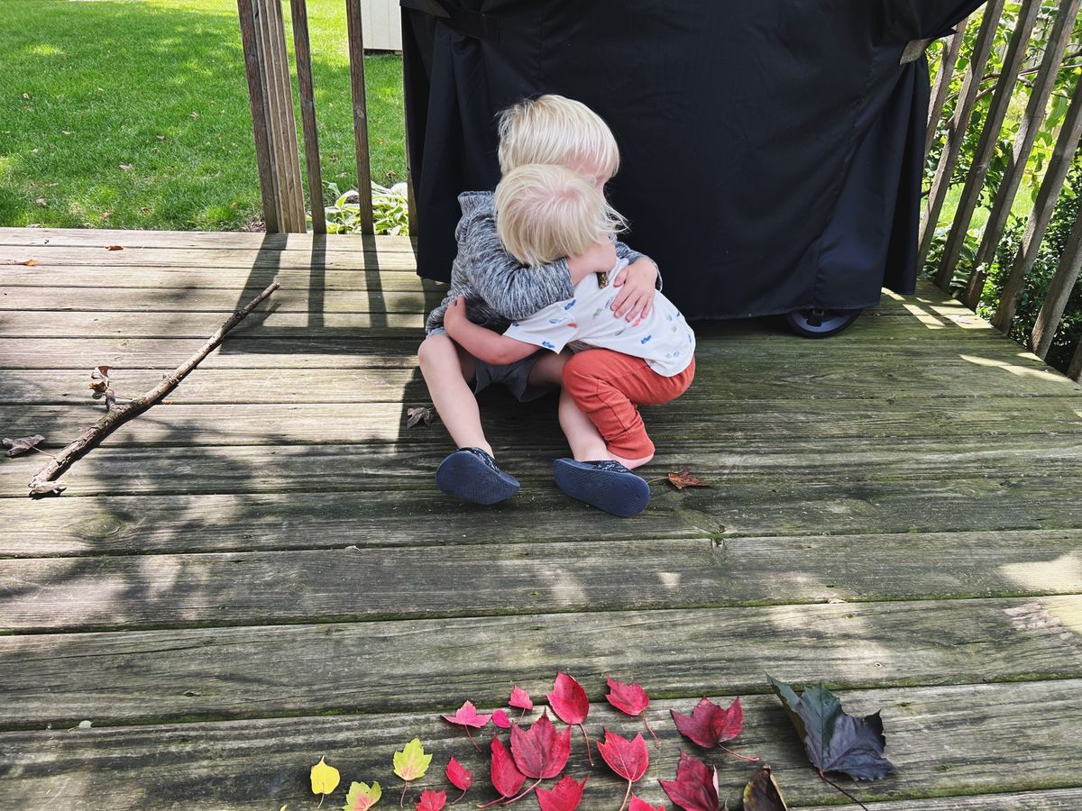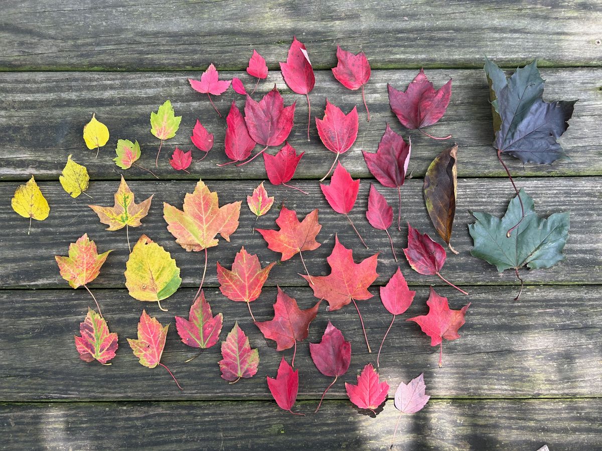 We went on walks looking for treasure (red leaves are me and Cooper's specialty). Finn is most interested in all cars and birds and dogs. ;) When we got home, we laid them all out in color order.
