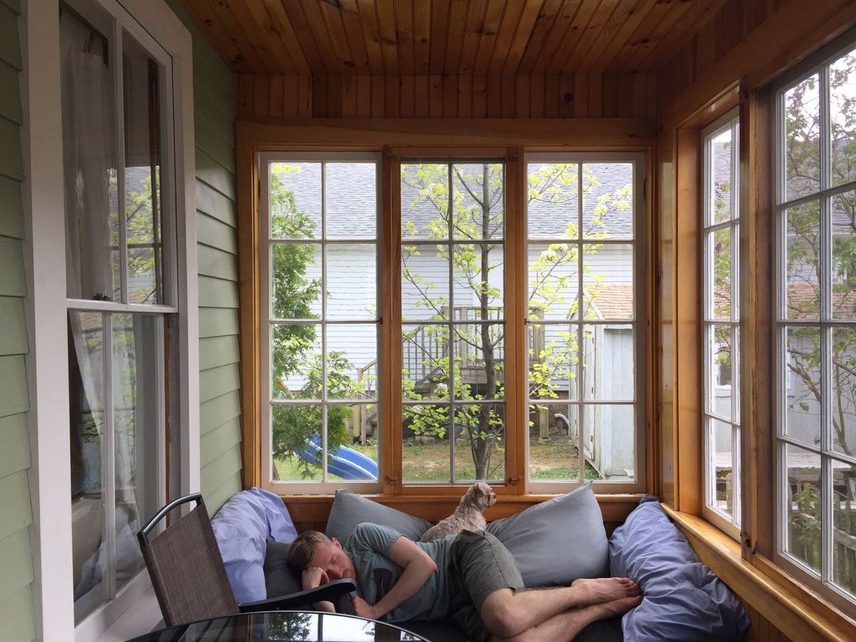- The sweetness of Nicholas napping on the sun porch with a puppy.