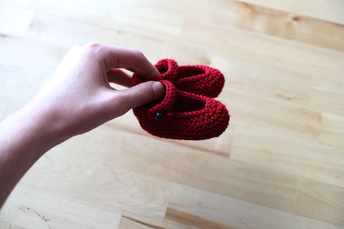 Congratulations, Brendan and Erin! Now that our friends' sweet little girl arrived, I can show these to you. I used this pattern, Cascade 220 Superwash (because baby things should be washable), and finished them with little black buttons.