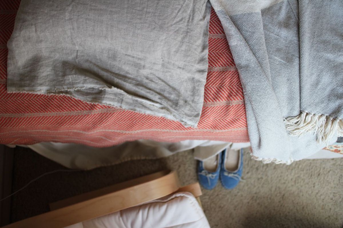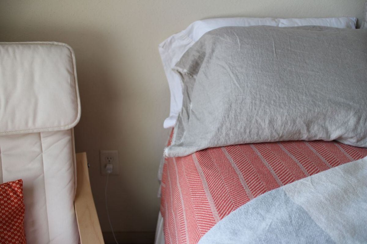 Not only do I love to wear linen (usually in knit-form like this), but I love the idea of a few well-placed, well-used, and well-loved linen household items. To experiment, I bought a small amount of natural-colored linen (about 1.5 yards) and made a selvedge-edge linen pillowcase with french seams following this tutorial on 3191 Miles Apart. This first one was a trial of sorts, but after the success of this first pillowcase, I plan to make four more. And I just love that comfy, rumpled look, and I'm excited to see how the linen softens even more over time.
