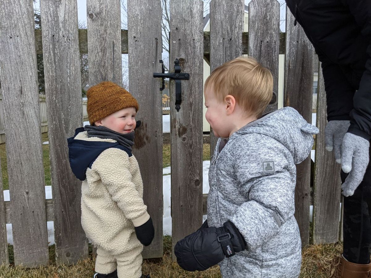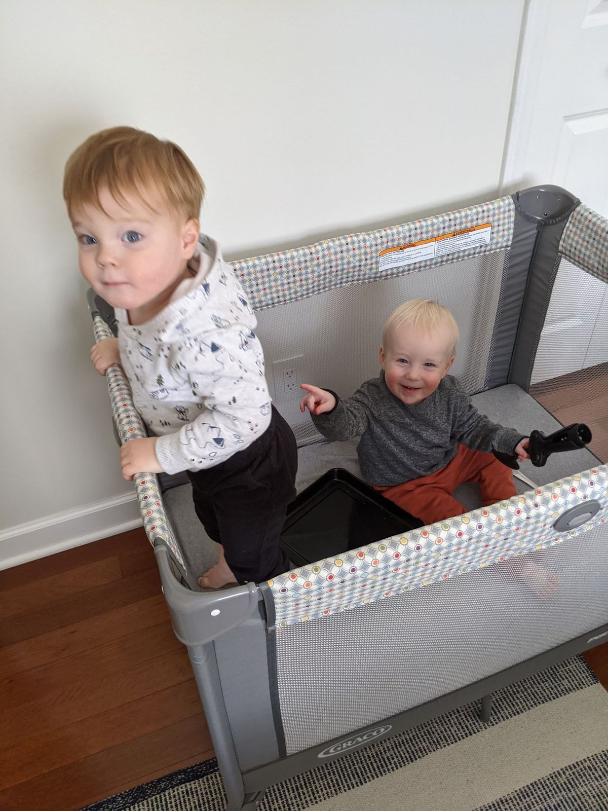 • Seeing the boys interact. They chased each other, laughing and screaming, shared their toys, carried around wooden tools from Cooper's tool set, etc. They loved jumping in the pack n play and trying to open the gate for the fence. Weston kept saying "Snow mama," and narrating so many things. The curiosity and sweetness of their ages is wonderful.