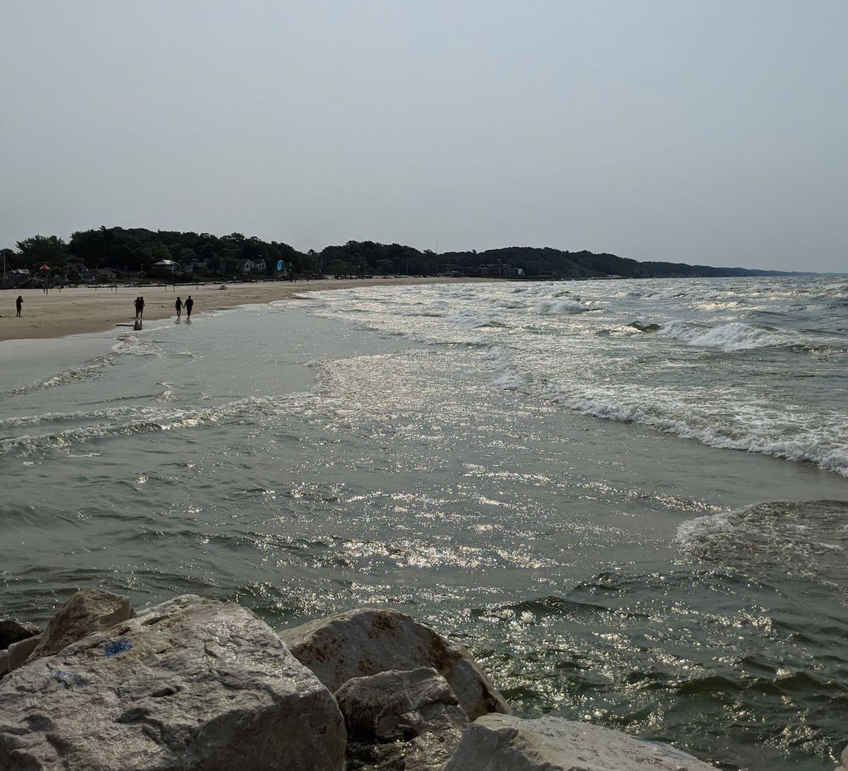 Thursday, we woke up, had Chemex coffee and breakfast, packed up most things, and then drove the few minutes to Lake Michigan again, for one more walk along the water. On this day, the water was calm and blue and bright, completely different than the day before, and still, the same lake. So large and shimmery and refreshing, even to be near.