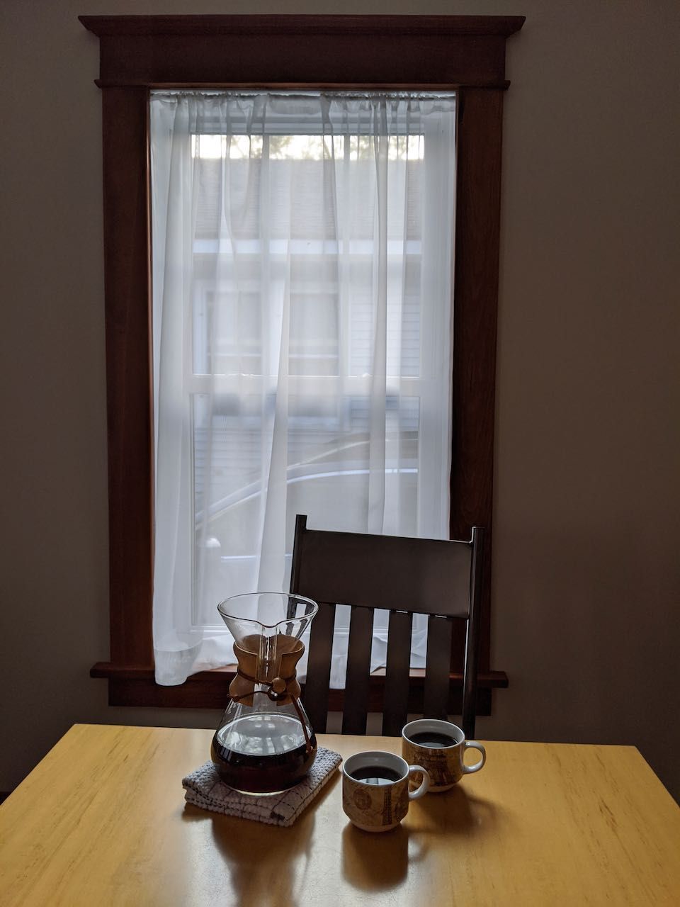 We arrived in the little coastal Michigan town in the late afternoon, unpacked, and let a very happy and curious toddler walk all over the little AirBnb, leaving nothing unexplored. After unwinding for a bit, we went out to find coffee, both to order a drink to share and to buy some very special coffee beans. My thoughtful Grandma Donna gave us some "fun, celebratory" money for our anniversary with directions to use it for something to treat ourselves, for something special. We indulged in special coffee from two shops, and a very nice (carryout) dinner the following night. Thank you, Grandma! We enjoyed a bit more luxury that we probably wouldn't have indulged in otherwise.