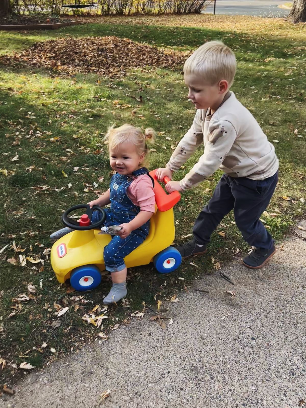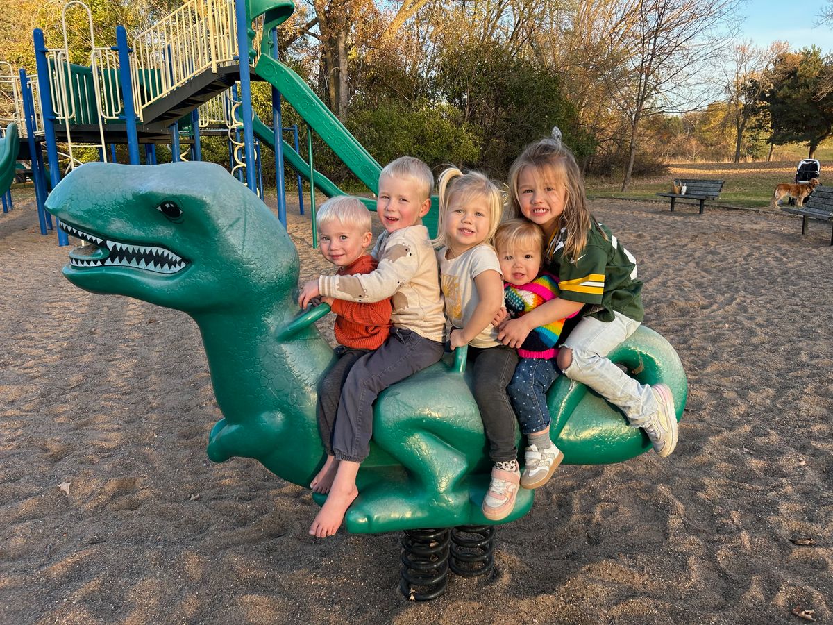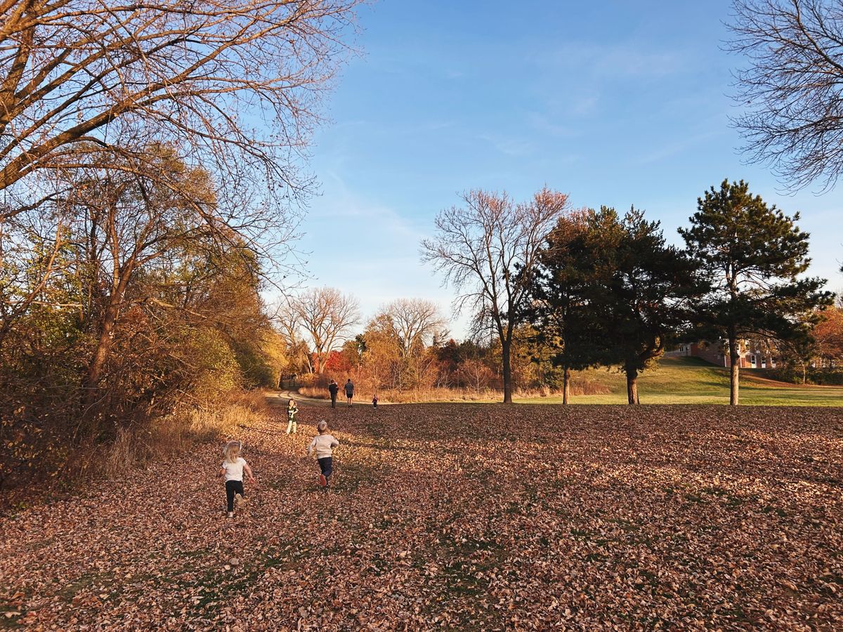 On Sunday, we all went to church in the morning. My mom got out the Lincoln logs my brother and I played with when we were little, and boys really enjoyed them. After lunch, Nicholas and I took the boys to see a childhood friend of mine, Lauren, and her family. It's so special to think that we were friends with each other when we were the ages of some of our littlest babies! We had snacks and the guys watched football, The kids jumped in leaf piles and played with bubbles, and then we all walked to a nearby park for a bit. It was another beautiful day. And what a gift to have some uninterrupted conversation with my friend Lauren, to talk about good and hard things in parenting, grief and loss, and God's goodness and faithfulness through it all.
