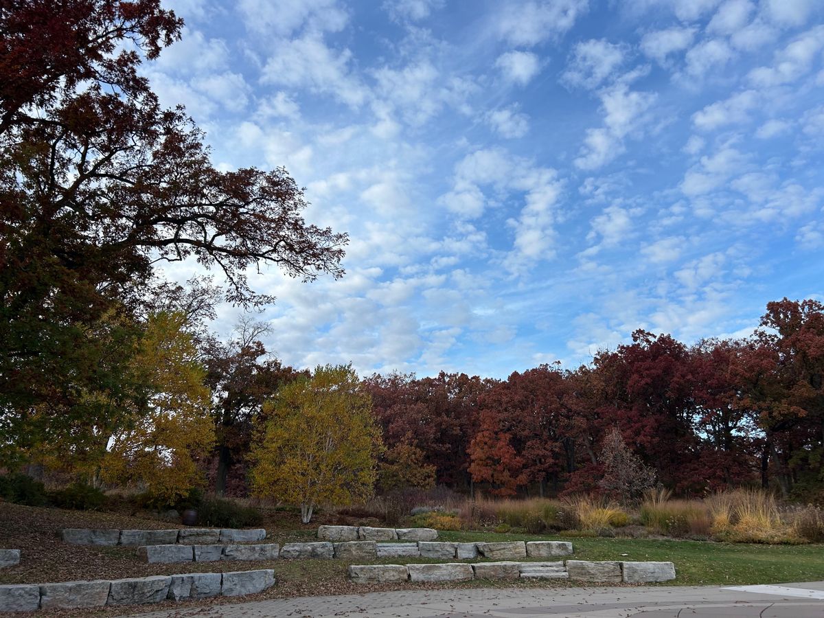 The drive was beautiful – the rolling hills of Wisconsin comprise much of it, with their just-past-peak fall color. I knit in the car, while Nicholas drove, and the boys did pretty well on the long drive (lots of snacks always help).