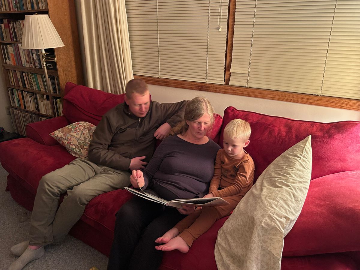- Finn becoming very attached to a "teeny tiny book" of shadow puppets that was my mom's and insisting on wearing his red rain boots for the entirely (clear skies) visit