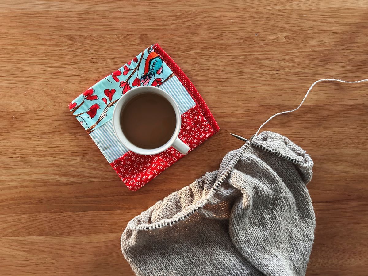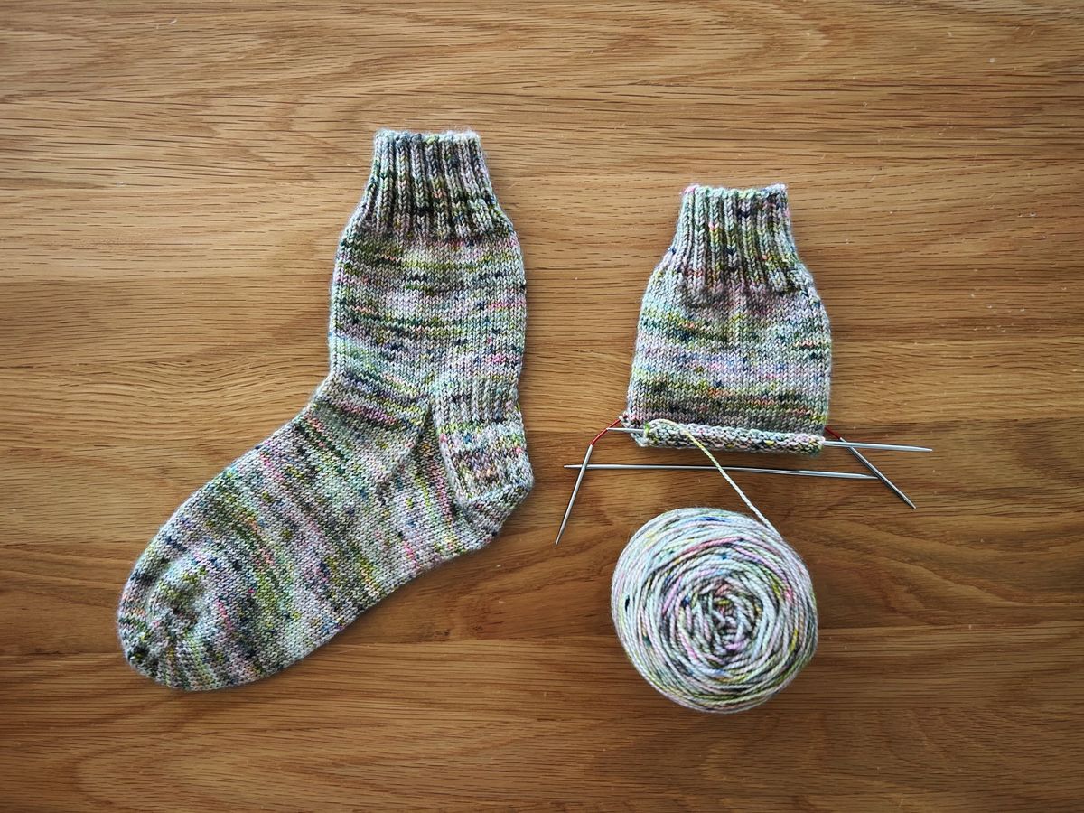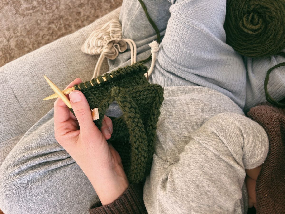 My current on the go project is a pair of vanilla socks that will be a gift. I work on them on car rides when I'm a passenger, or during homeschool, or while Arlo naps on me. A few stitches here and there eventually, I have a pair of socks. I'll share more about them after they are gifted, but I am really enjoying the (special!) yarn.