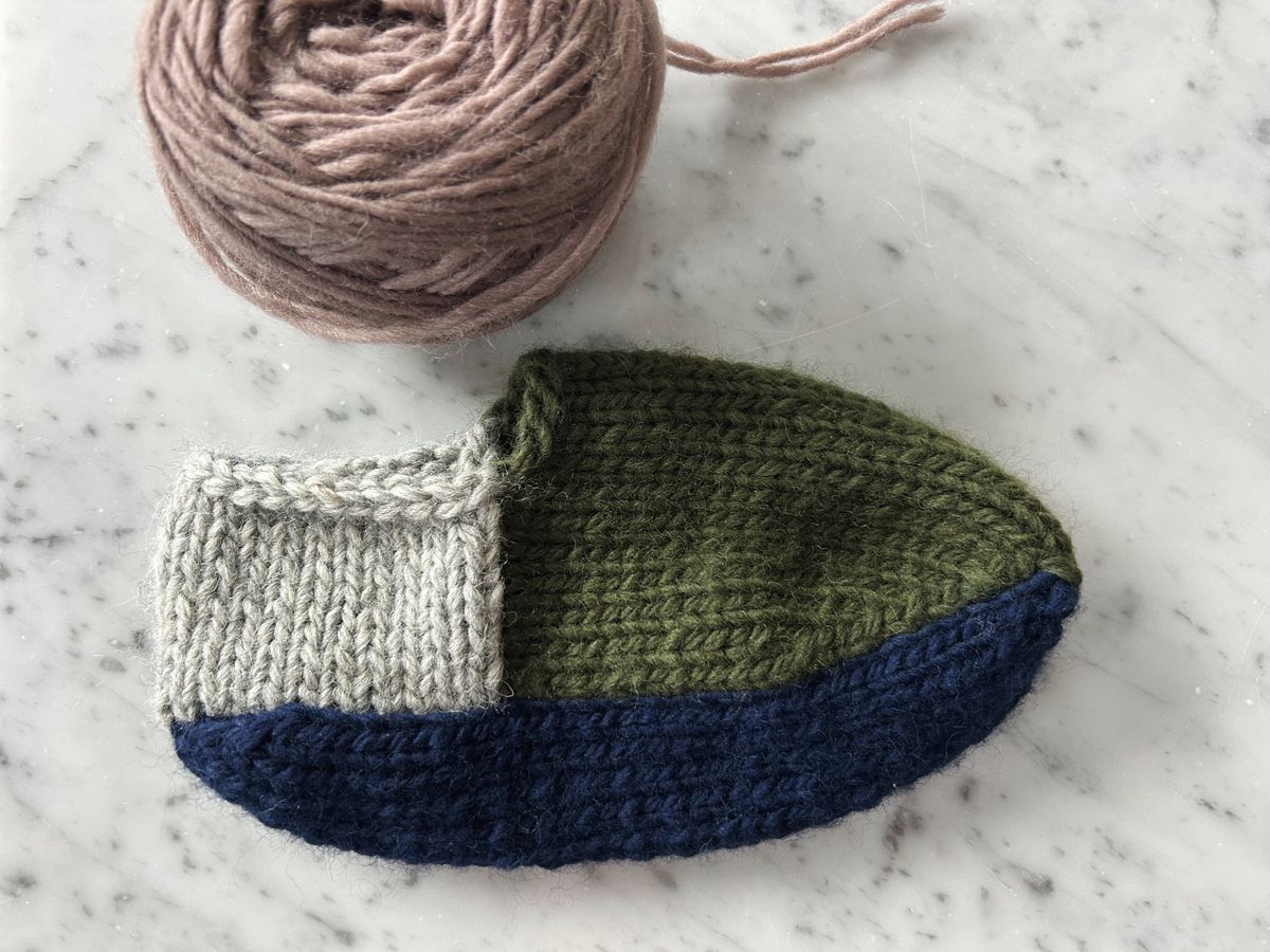 The day I finished these, Cooper asked for a pair, as did Finn. So I knit two more pairs, same yarn and needle pairing, but using the Sailor Slippers Junior pattern. Coopers are a solid olive to match Nicholas, and Finn chose from the other colors of the Lion Brand Wool Ease Roving that I had and opted for a colorblock look and those might be my favorite. Both adult and junior patterns come with a coloring page so you can plan out your color scheme, which is helpful for a colorblocked or striped version. For more details, here is a link to Cooper's slippers and Finn's slippers.