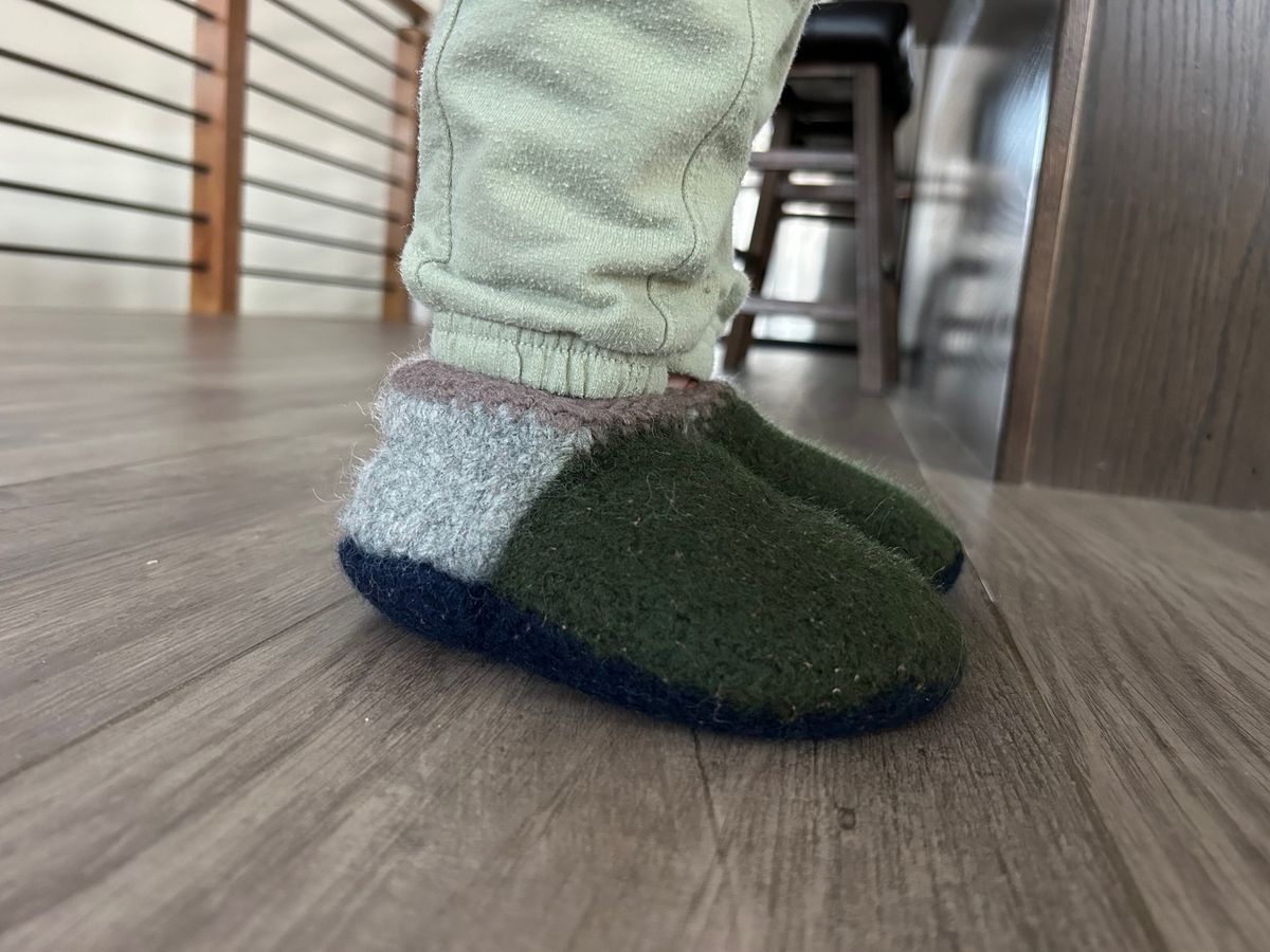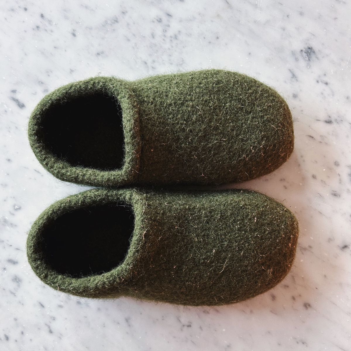 *For future pairs (and there likely will be future pairs), I will try an old t-shirt instead of a towel, since I found some fibers from the towel made their way into the felted fabric.