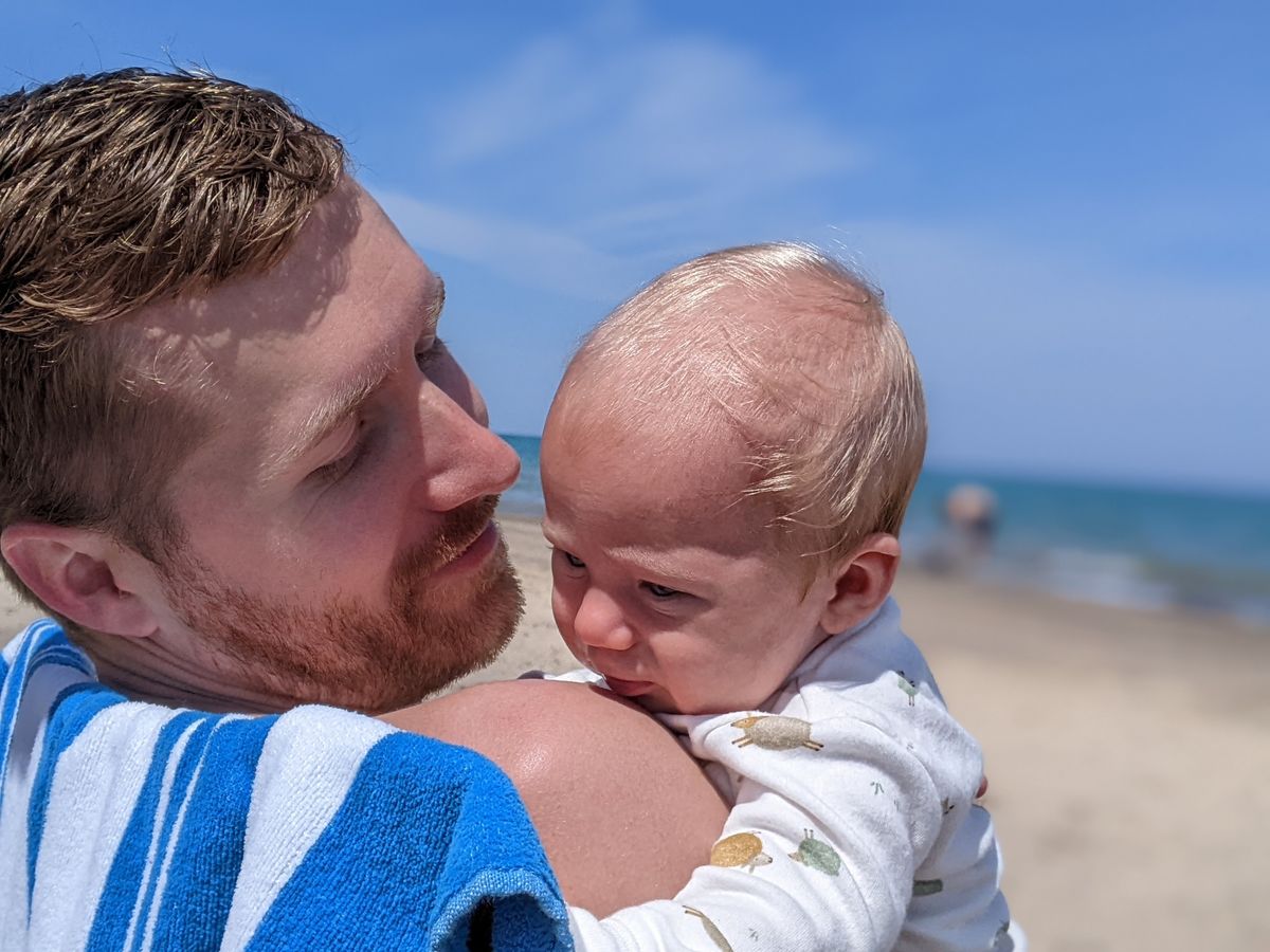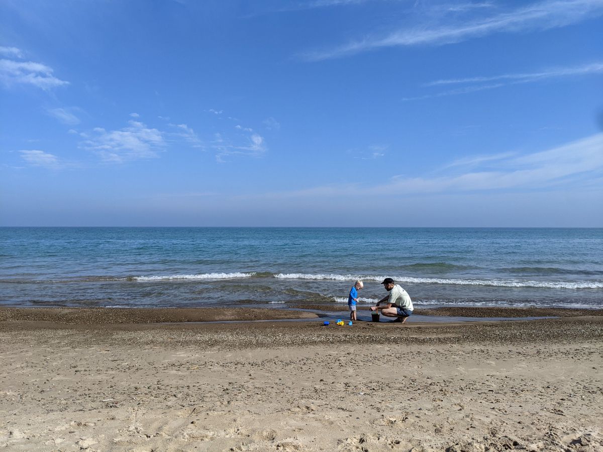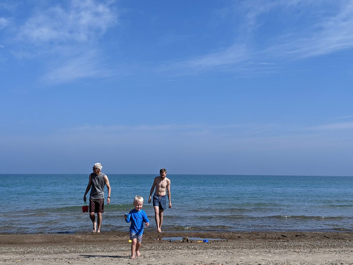 We snacked, we played in the (relatively comfortably warm) water of Lake Michigan, we played in the sand with Coop and snuggled Finn.