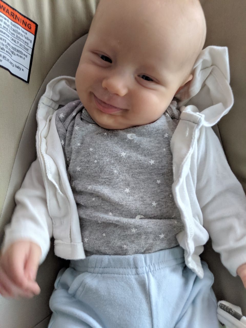 And that's how we start most of our days: him bouncing and squealing and smiling and blowing spit bubbles, me taking bites of breakfast and sips of coffee between lyrics sung to this little boy. I love it.