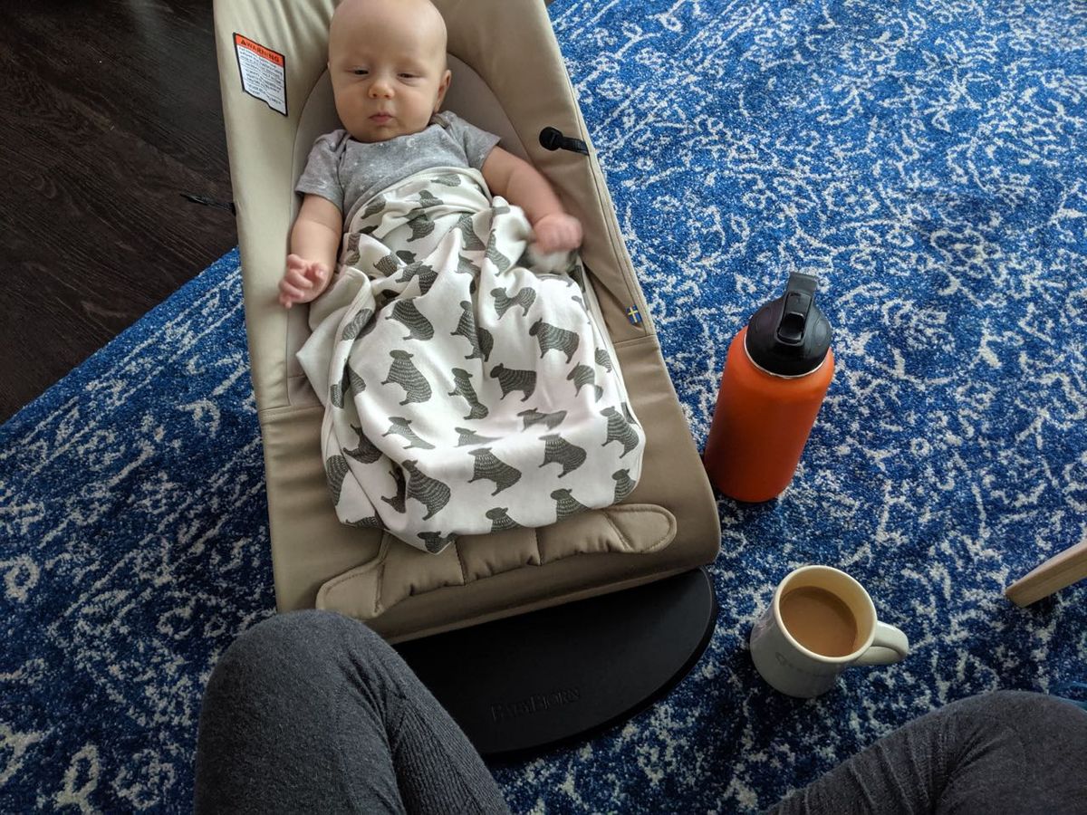 My mornings look radically different than they did just three months ago. And personally, I love them so much more. I usually nurse Cooper around the time Nicholas leaves for work, and then since it's still early, he will usually sleep for another 1-2 hours. Then, I get up, open the blinds, nurse him again, and "chat" a little with him in bed. I change him and get him dressed for the day (his favorite!) and then set him in the bouncer while I quick make coffee and breakfast for myself.