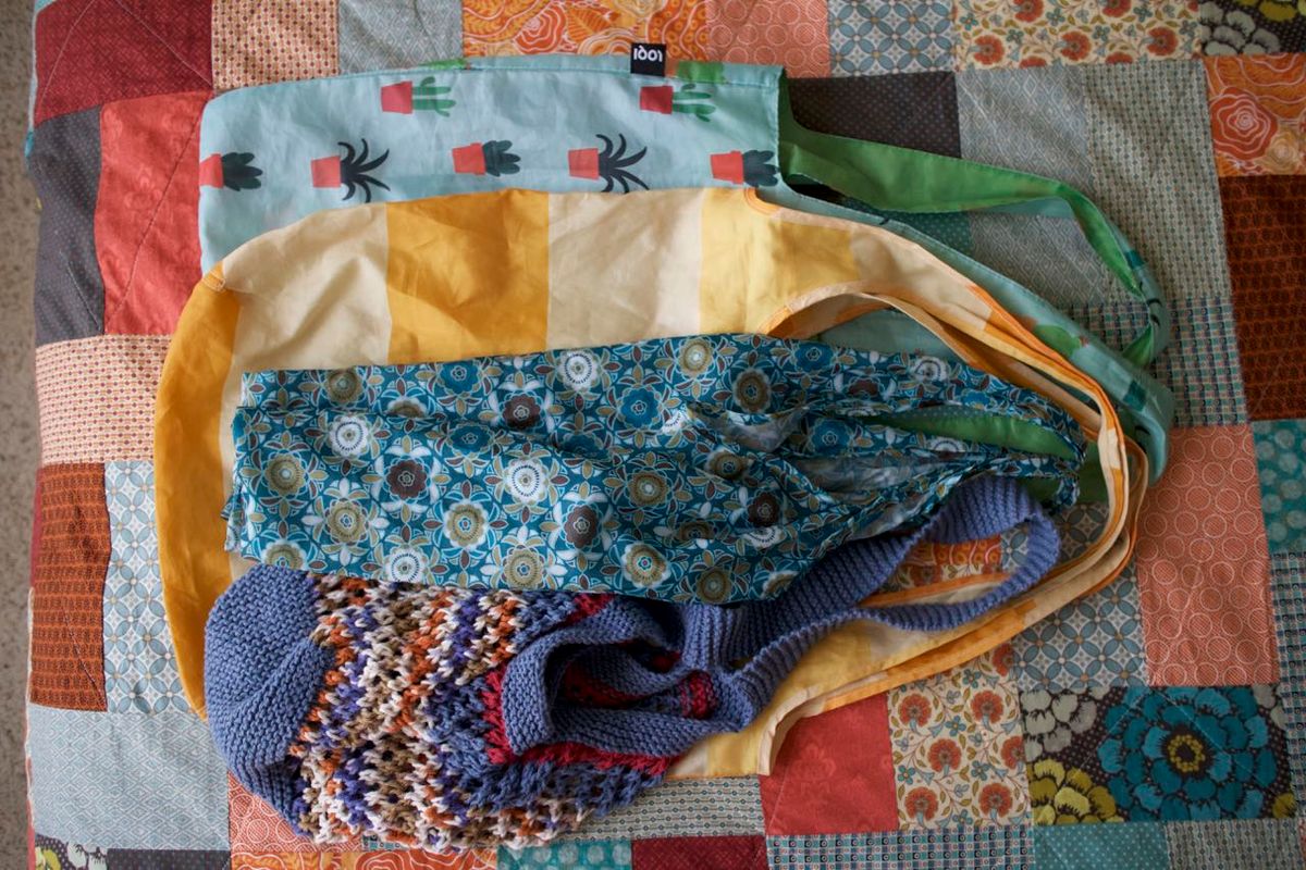 Reusable shopping bags (knit, canvas, fabric): In 2013, Austin introduced a "single-use bag ban" (with variable reported outcomes for actual waste reduction). That being said, when we moved to Austin, the ban helped perpetuate good habits for me. Whenever I shop, I bring the bags with me. If for nothing else, I'm not personally creating any waste with plastic bags and I don't have to spend time bringing the single-use plastic bags to one of few facilities that actually recycles them. Plus, I'm always fond of a little extra brightness in my day.