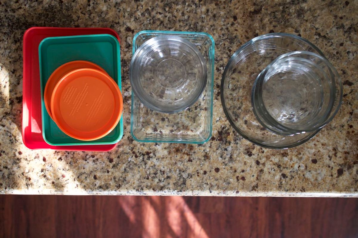 Glass food containers: I have two sets—one by Pyrex and one by Anchor Hocking, and I'm fond of both. These are indispensable in our kitchen for storing leftovers and for packing lunches. With the two sets we own (and only two people in our household), at any given time, they could all be in use!