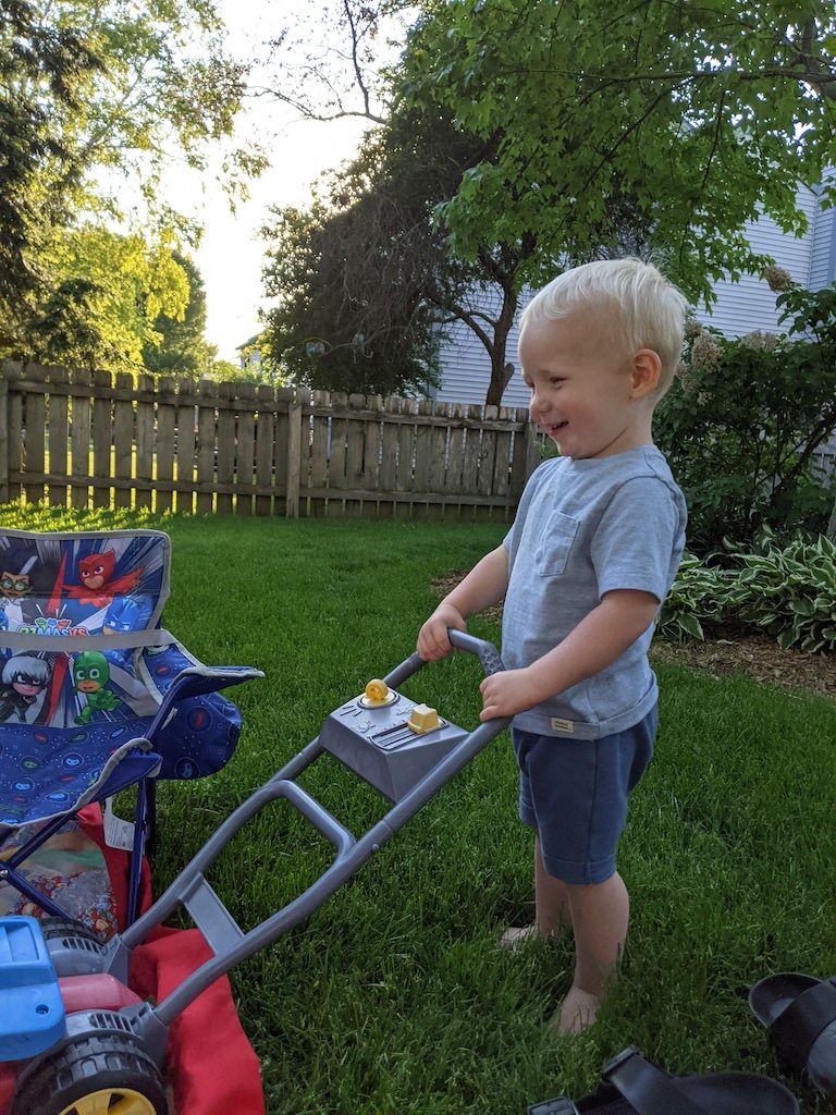 Visiting the library, checking out Curious George books and Thomas the Tank Engine books, and any other books we happen upon. Cooper loves the little tables and chairs in the kids section that are just his size.
