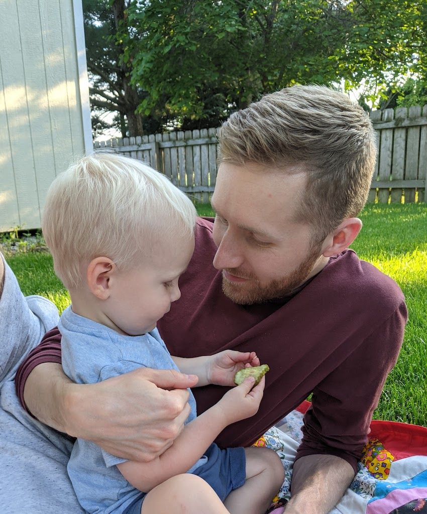 Baking muffins with my little buddy, then eating said muffins on the back deck. Oh, I love him so.