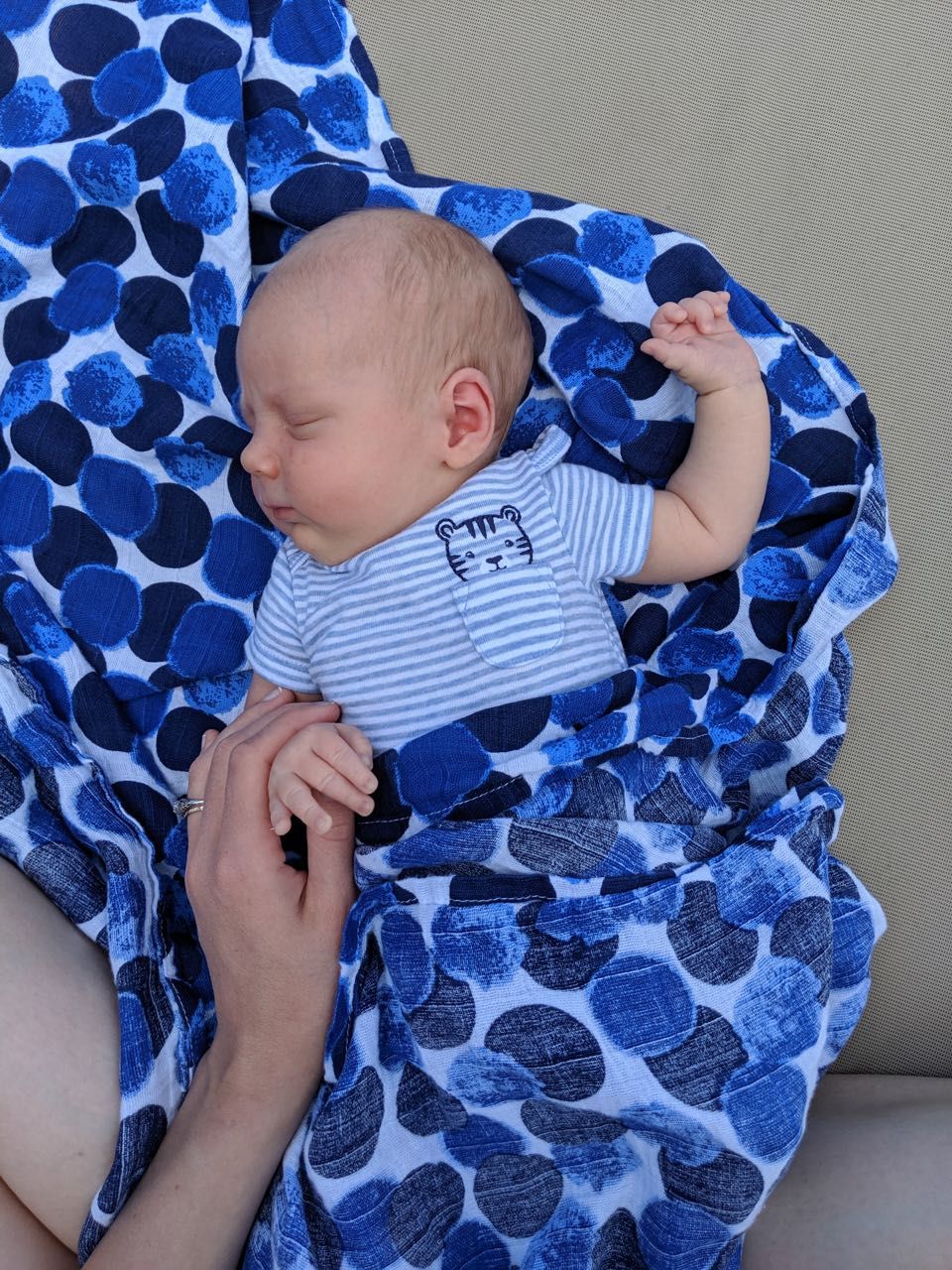 Solly Wrap—This is a game-changer. I had heard that the key to baby wearing is to start early, so we tried this wrap out the first week we had him home. If he won't nap in his crib, he will definitely nap in the wrap. And as I'm venturing out from home a little more, this is a must-have for grocery store and costco trips. He loves being snuggled in, and I love that he's close and I have both hands free. I also wear him while making dinner, if he's not interested in a nap in the crib. Nicholas loves wearing him too!