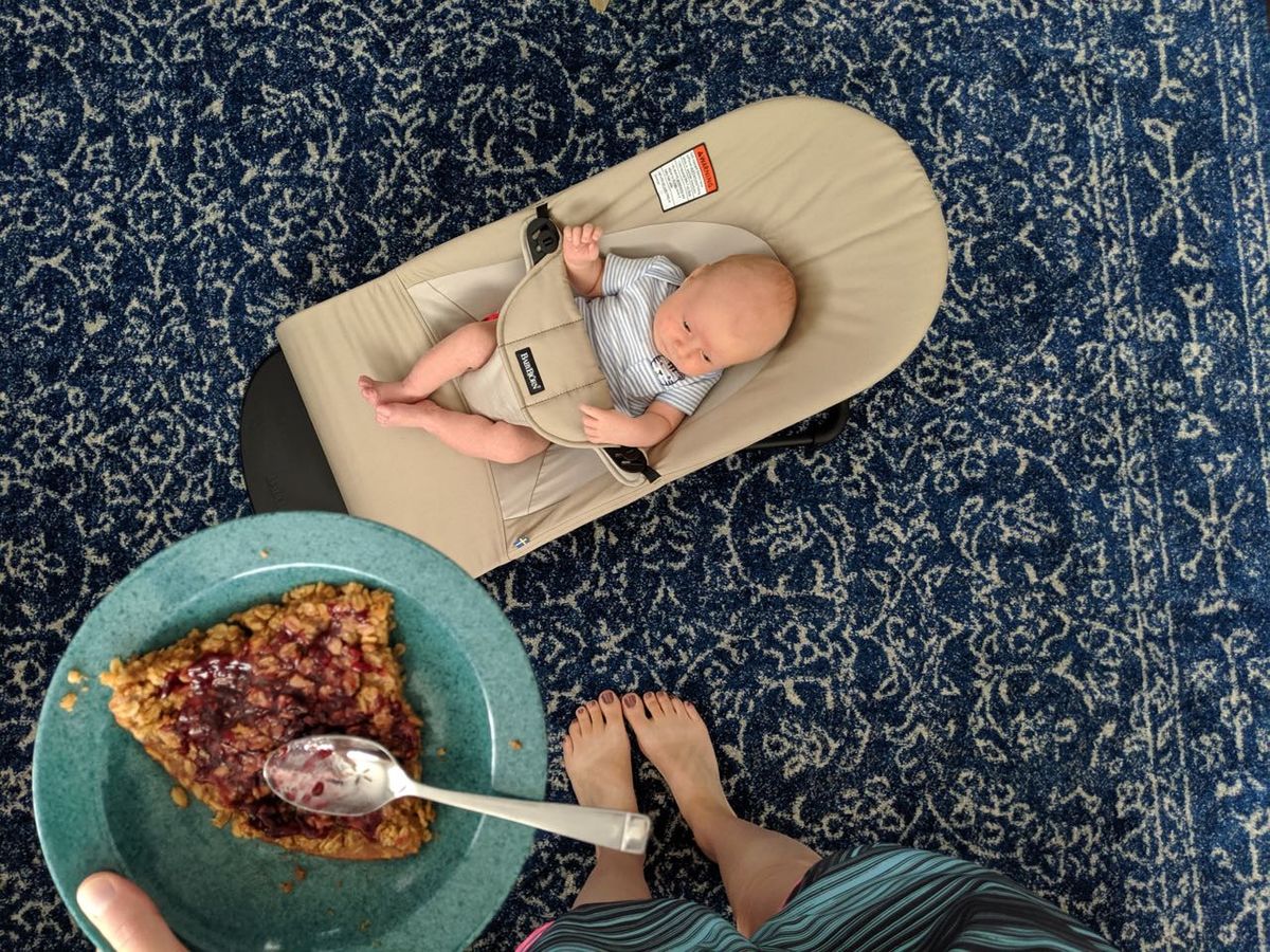 - Really good snacks! Having ready-to-grab snacks is essential. A friend brought over these Superhero muffins shortly after we got home and I love them. I've made another batch and plan to have them ready regularly for a grab-and-go snack. (I added mini chocolate chips and used almond flour, rather than almond meal, and left out the raisins, since that's what I had). Other items I've been snacking on include nuts, string cheese, nectarines, chips and guac, etc. I've also made these oatmeal chocolate chip cookies at least three times since I had Cooper.