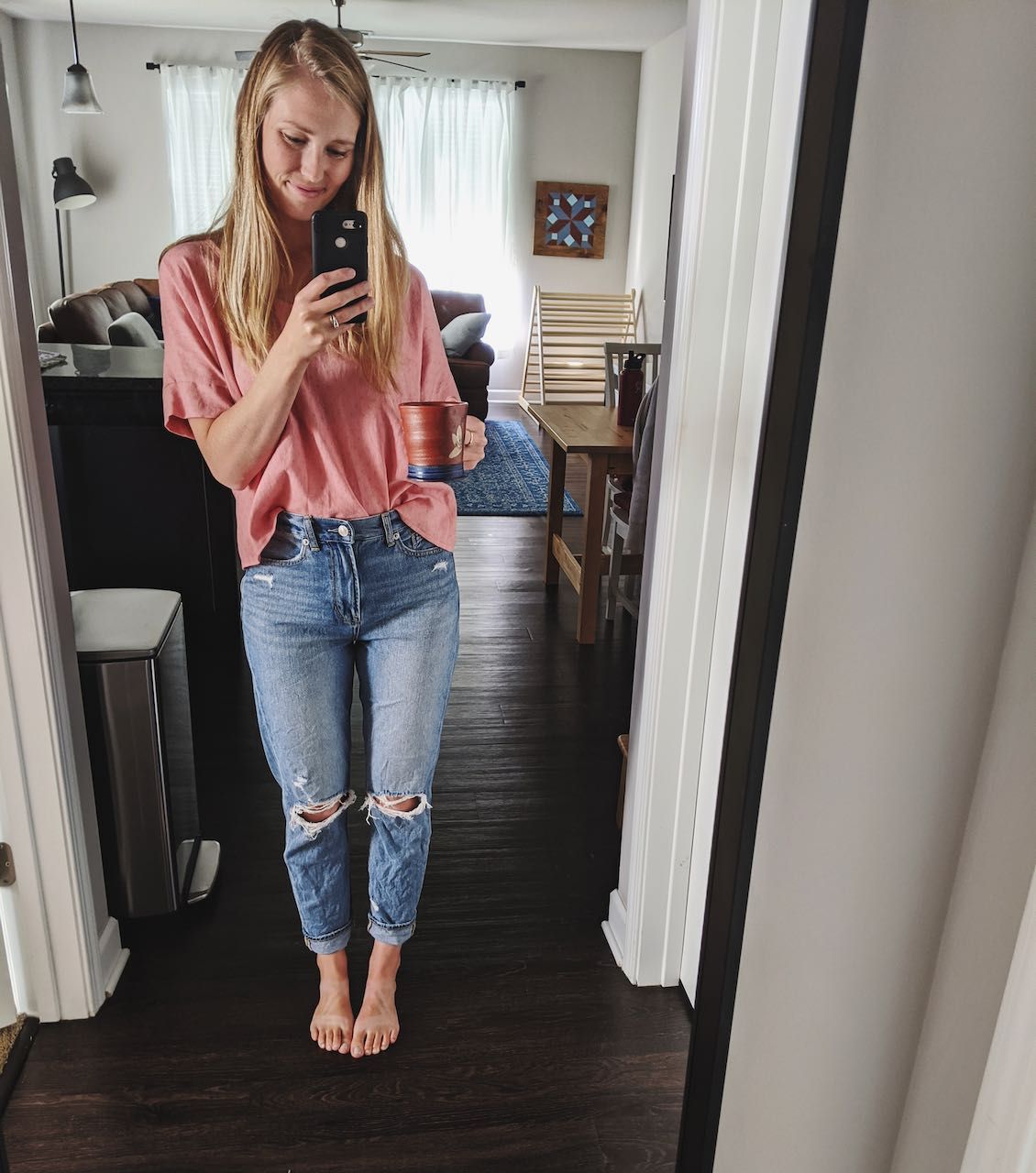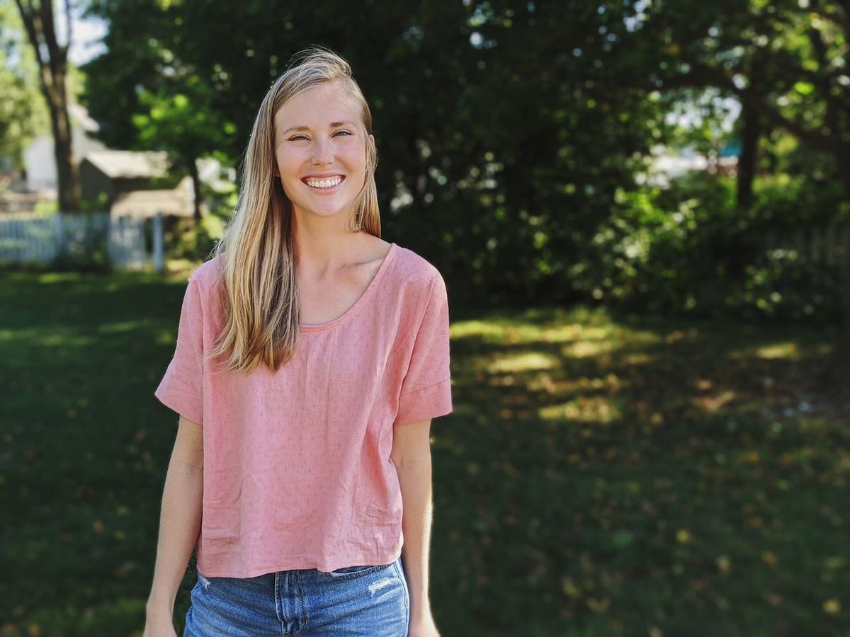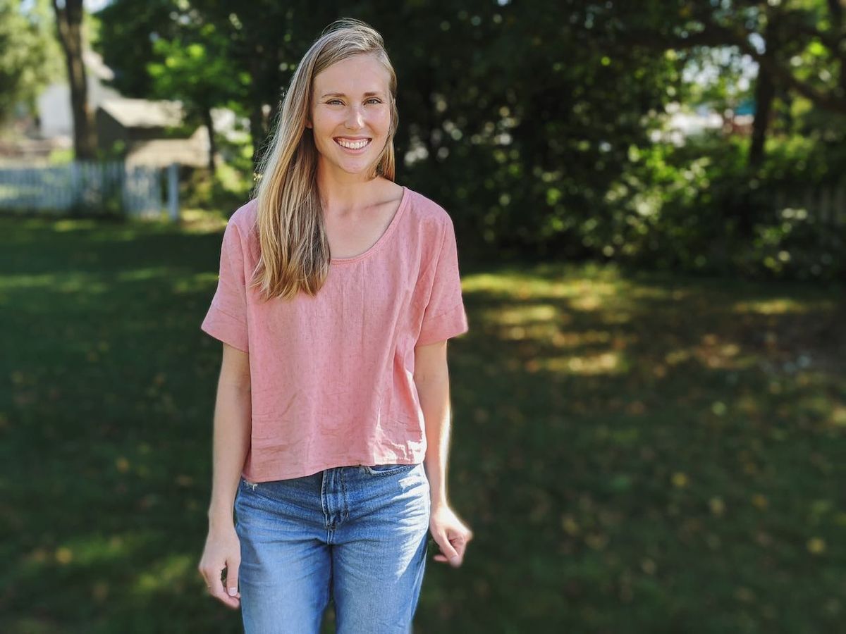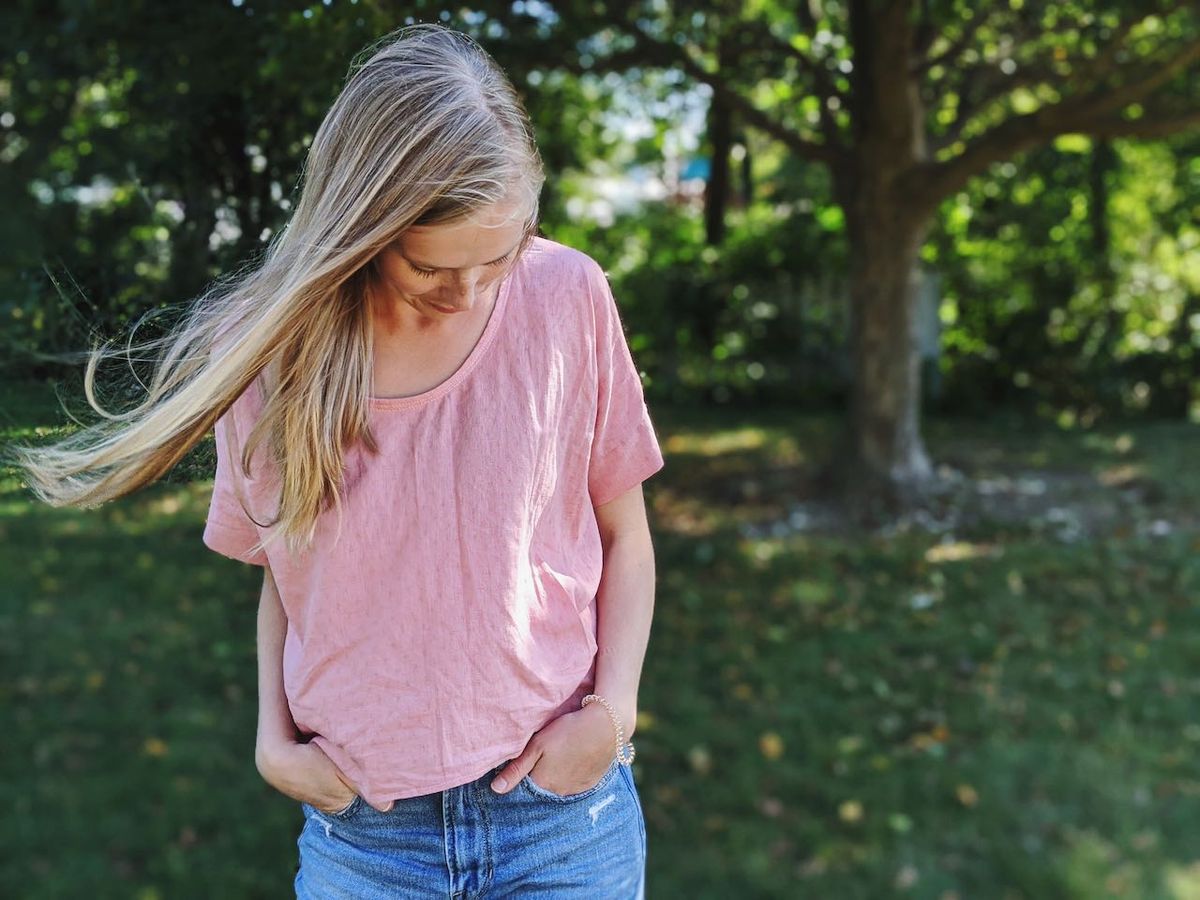 Sewing hasn't been my go-to for quite some time. I do enjoy it, but in a home where the setup and takedown are a bit extensive and the "sewing table," aka kitchen table, is feet from the baby's room, the quiet of knitting needles usually wins out. That said, at the end of May, I sewed this top over the course of a few days, and then never shared it. I love how it turned out, I just haven't had occasion to wear it due to weather and lack of social events. I don't reach for tops with sleeves nearly as much on hot days, even if they're breezy and lightweight, like this one. It's one of those tops that I didn't know could become a go-to, until I actually wore it.