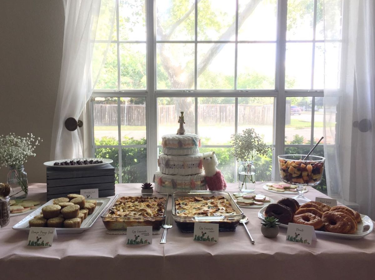 The baby shower was so fun! I made orange poppyseed muffins, fruit salad, and two different kinds of egg breakfast casseroles (one of which was my simple sausage, egg, and cheese breakfast casserole). My friends Jessica and Katie did all the invitations and decor, which turned out beautiful. It was such a lovely morning celebrating my friend Molly and her soon-to-arrive baby girl!