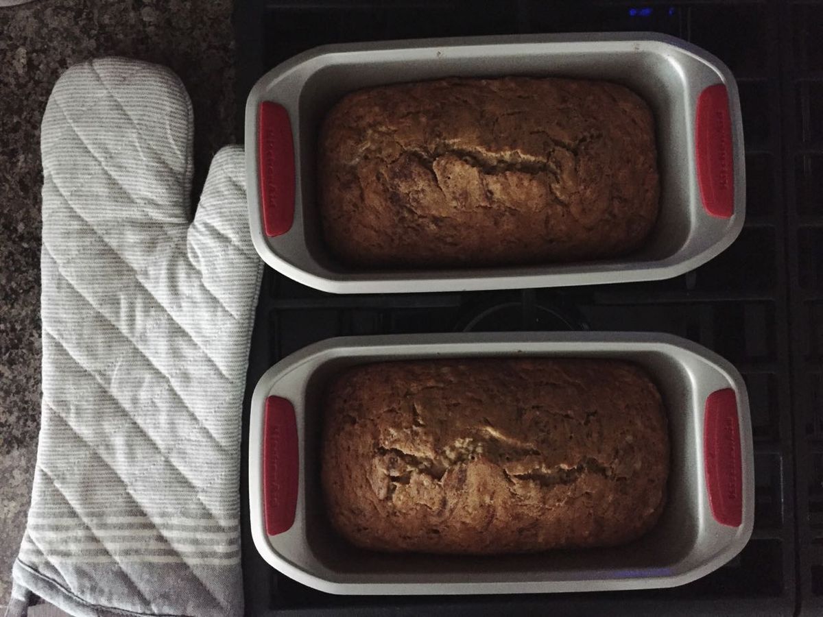 I also made some banana bread, because I had 4 bananas currently too ripe for my taste, and some free time. I used Cookie and Kate's recipe, subbing in all-purpose gf flour and used maple syrup to sweeten. It's so good. I made a double batch and put one loaf in the freezer, since I'll need some good nursing snacks on hand.