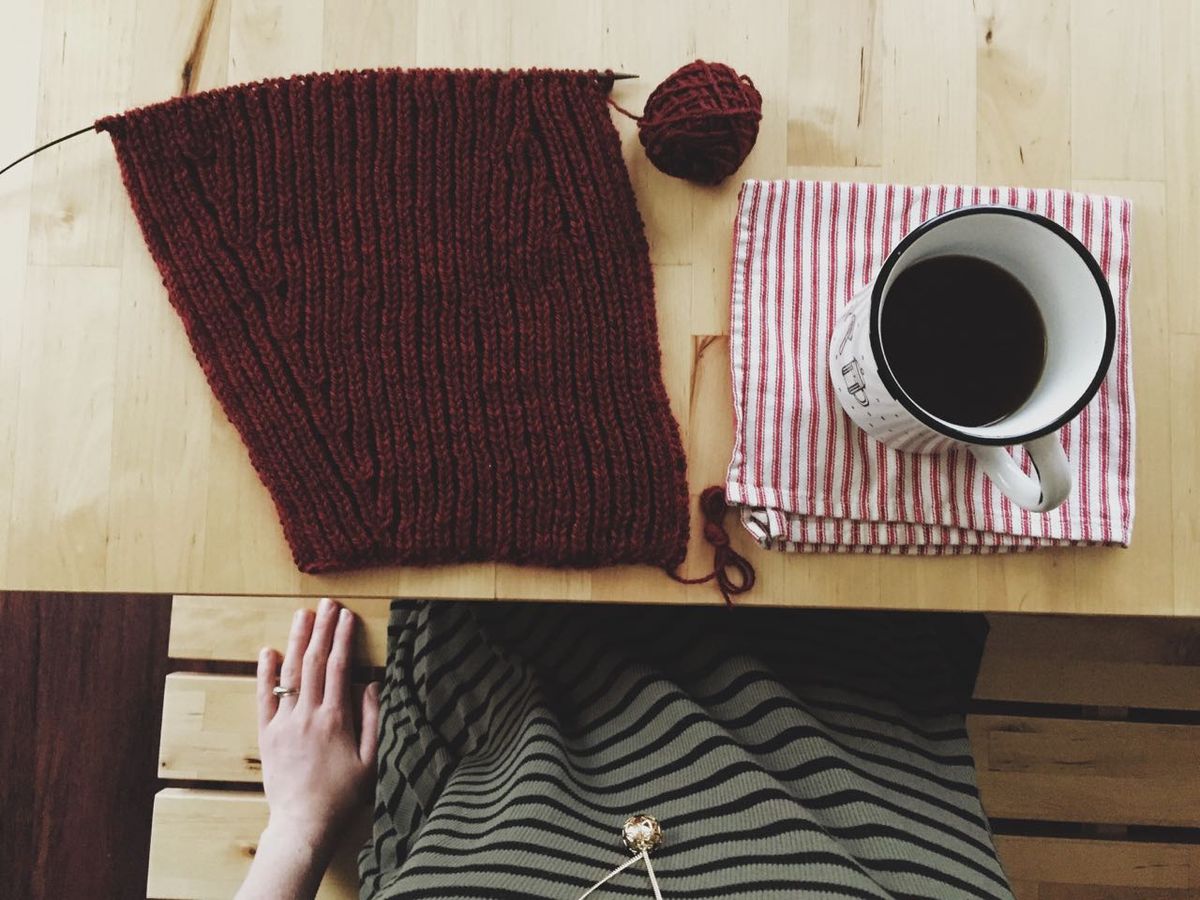 On try number five, here I am, knitting something I love, something useful and beautiful, something that is a good fit for the yarn. I'm making the Junction Scarf by Jared Flood, a smooshy brioche scarf, which I'm knitting a bit wider than specified for extra coziness. It's equal parts soothing + mindless + exciting to knit brioche on the bias. And I'm looking forward to both the process of knitting it and the finished object.