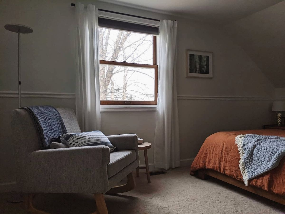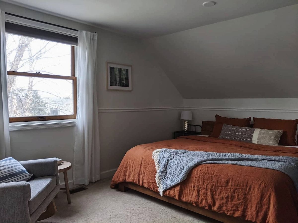 We bought a new linen duvet for our bed, matching shams, and a long lumbar pillow.