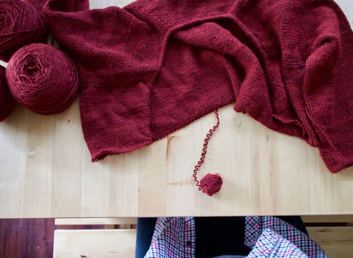 - Mend, make do, or repurpose whenever possible to avoid waste of materials. This includes mending my pre-existing wardrobe, ripping out knitting projects I have no intent to finish so the yarn can be repurposed, etc. Specifically: unravel my Atelier—the pattern is wonderful—the yarn is not. And although I love the color, I don't see myself wearing it in garment form. The sleeves are much too big and the neckline rolls in, which drives me nuts with sweaters. This yarn would be much happier as an accessory or for a gift.
