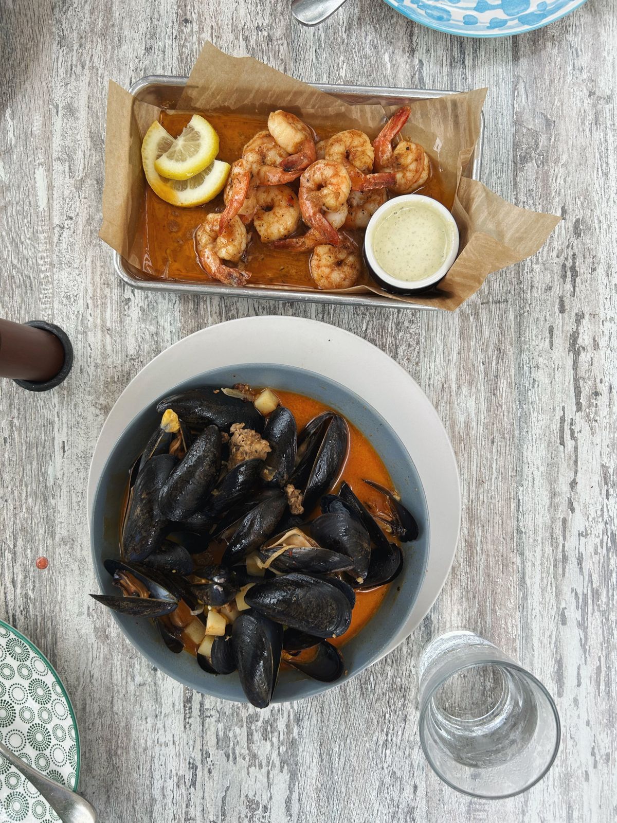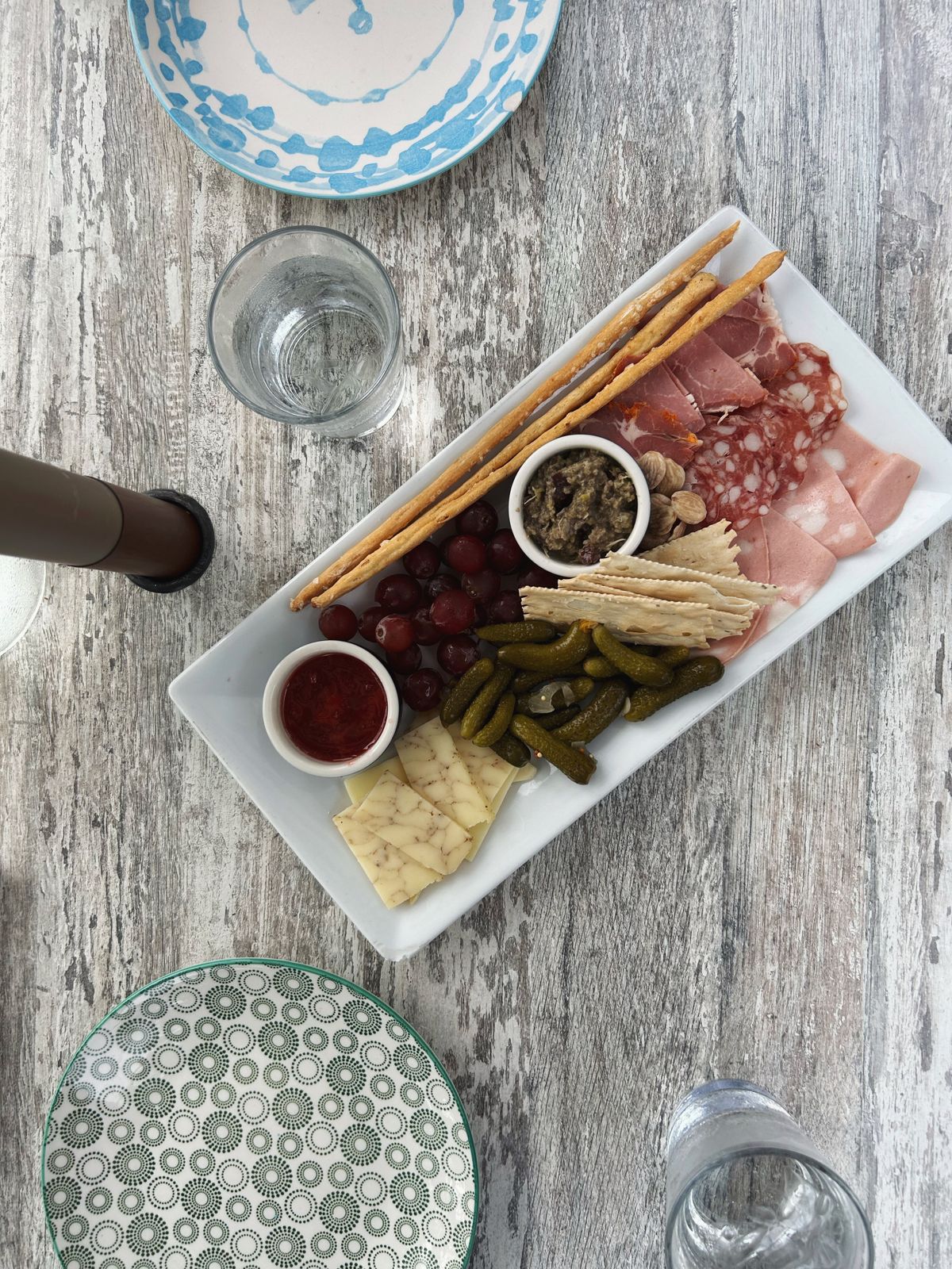 And this past weekend, my father- and sister-in-law graciously agreed to watch the boys, so we could do an anniversary dinner date! We sat on the patio, as it was a cool, breezy evening. We don't eat out very often, so when we do, we like to choose foods that we couldn't easily make at home, so Nicholas ordered a spiced shrimp and I had mussels for the first time. And this particular restaurant does a really nice charcuterie board, so we ordered that, as well. We prayed for our food and our marriage over the last ten years and the years ahead and really enjoyed our food.