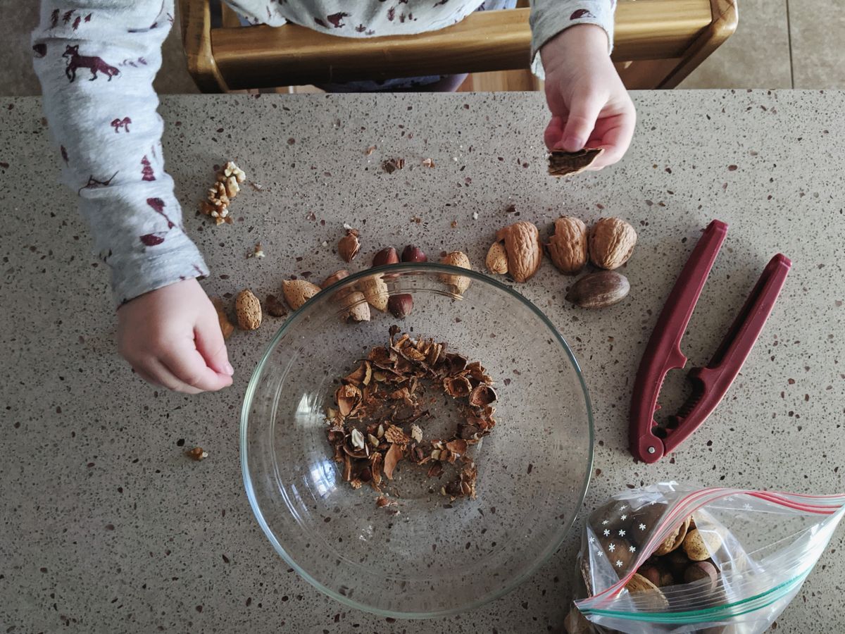 I've had coffee dates with my friend Molly, our weekly park dates with friends, and special Cooper-mommy dates to get a haircut for him, followed by a macaron or two from a quality local bakery. And we love having our (inexpensive, grocery-store-find) nutcracker and some mixed nuts out. A snack and an activity for the whole family. Cooper loves it.