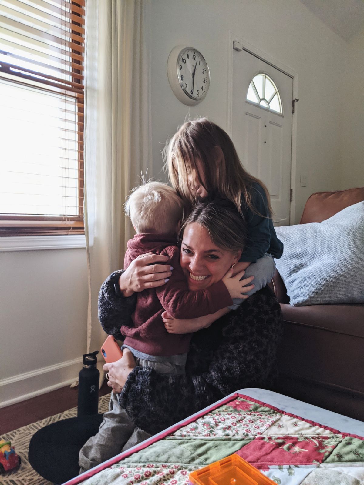 And, we've had the adjustment of converting Cooper's bed to a toddler bed, and all the changes with a nap/sleep routine that come with that. Namely, he's dozing off more snuggled up on us, or on the couch, both of which we love. I'm savoring these snuggles, and the sweet kicks from our growing babe.
