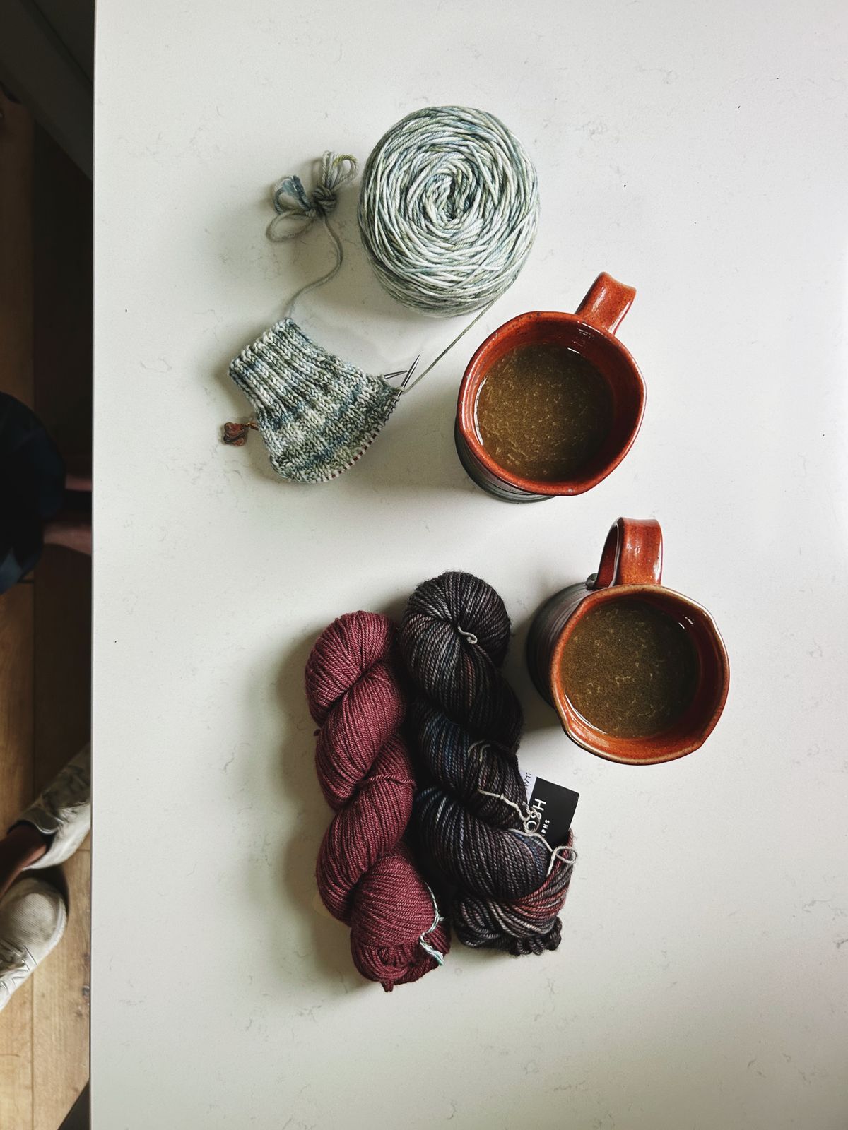 I went to my friend, Molly's earlier this week. The kids played with her dog and climbed trees and looked at coins and Molly made chocolate muffins and Chemex coffee (with MCT and collagen) for us. And we laughed a lot (always) and talked about music we listened to together back when we lived in Austin and how that makes us feel now, ten years later(!), and we talked about how we see the Lord teach us so much through our kids. And there was some knitting, naturally.