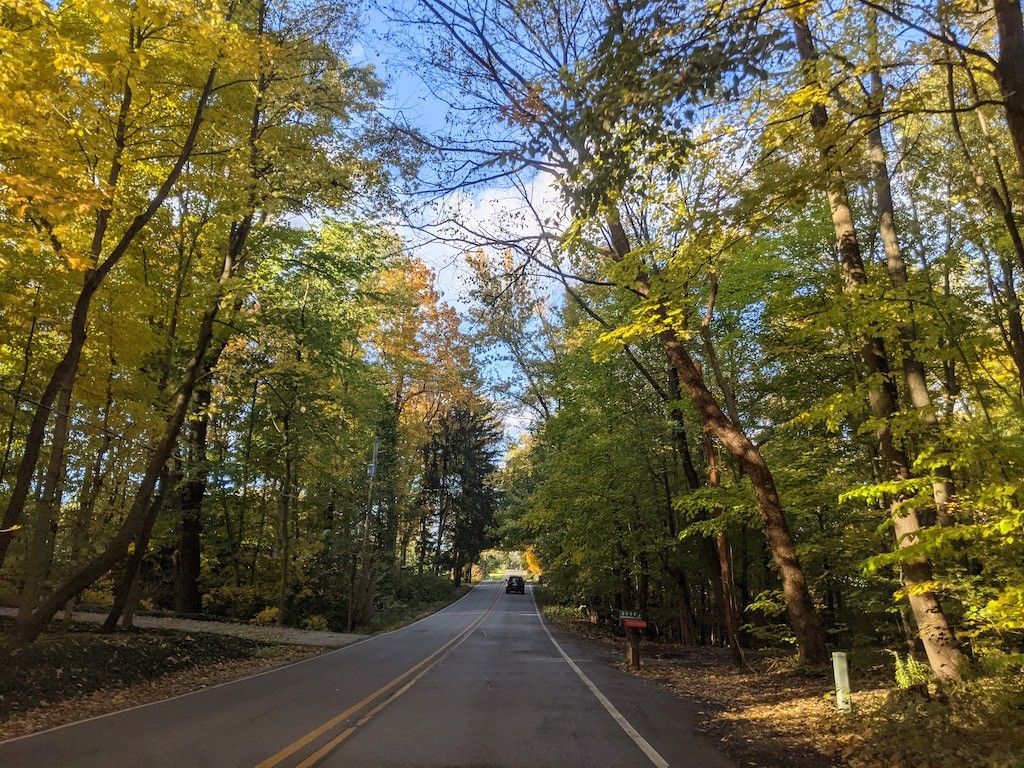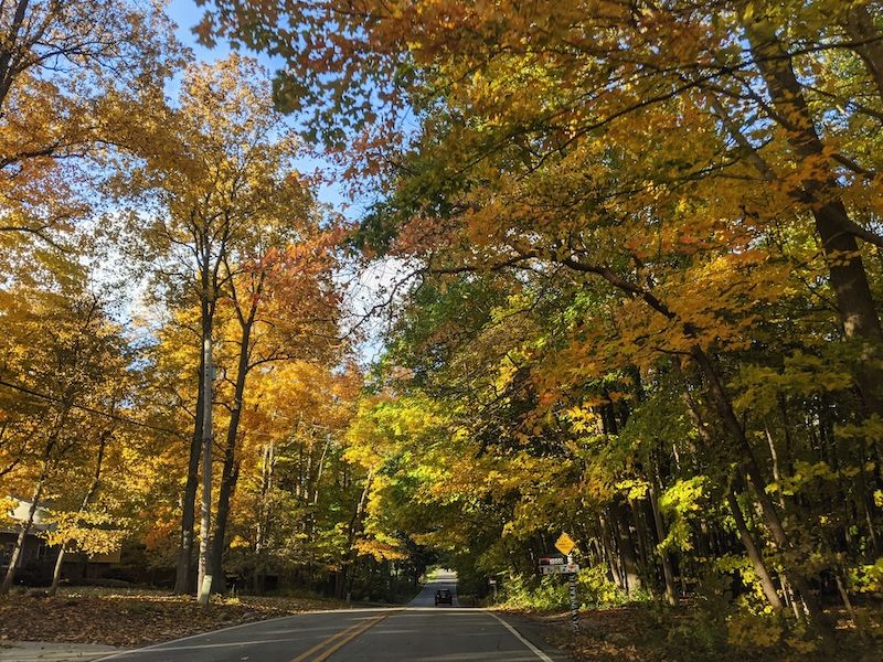Driving through our town, admiring the leaves. So much fall color! We have our favorite little segments of road that are particularly beautiful each year.