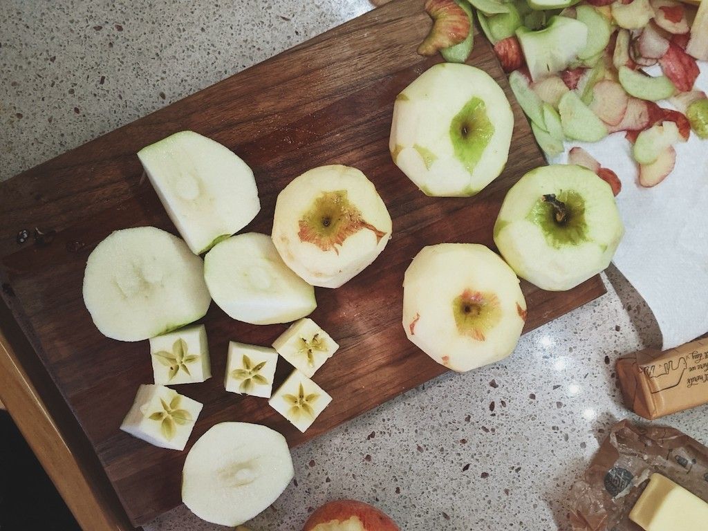 Making apple crisp with the remaining orchard apples + showing Cooper how God put stars inside the cores when He placed the seeds. Oh, how he loves the little stars (I do too).