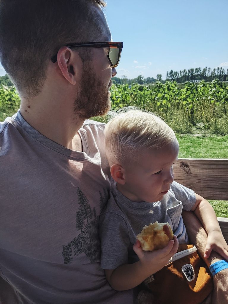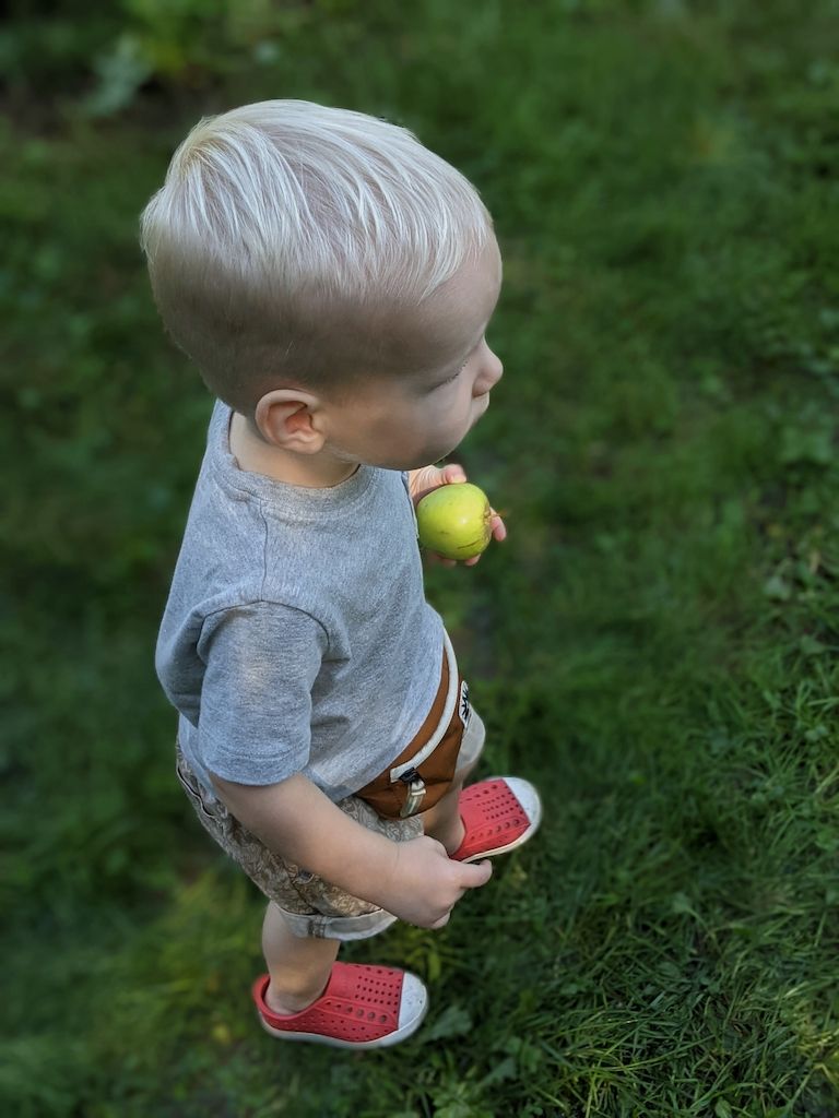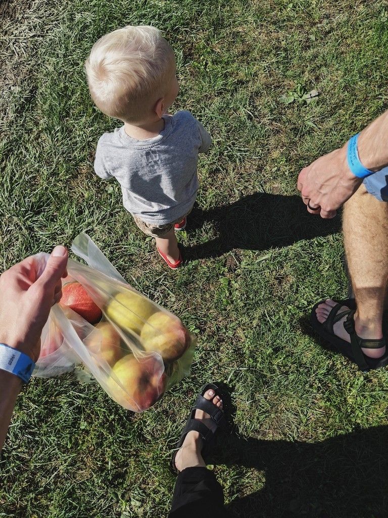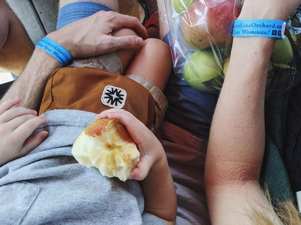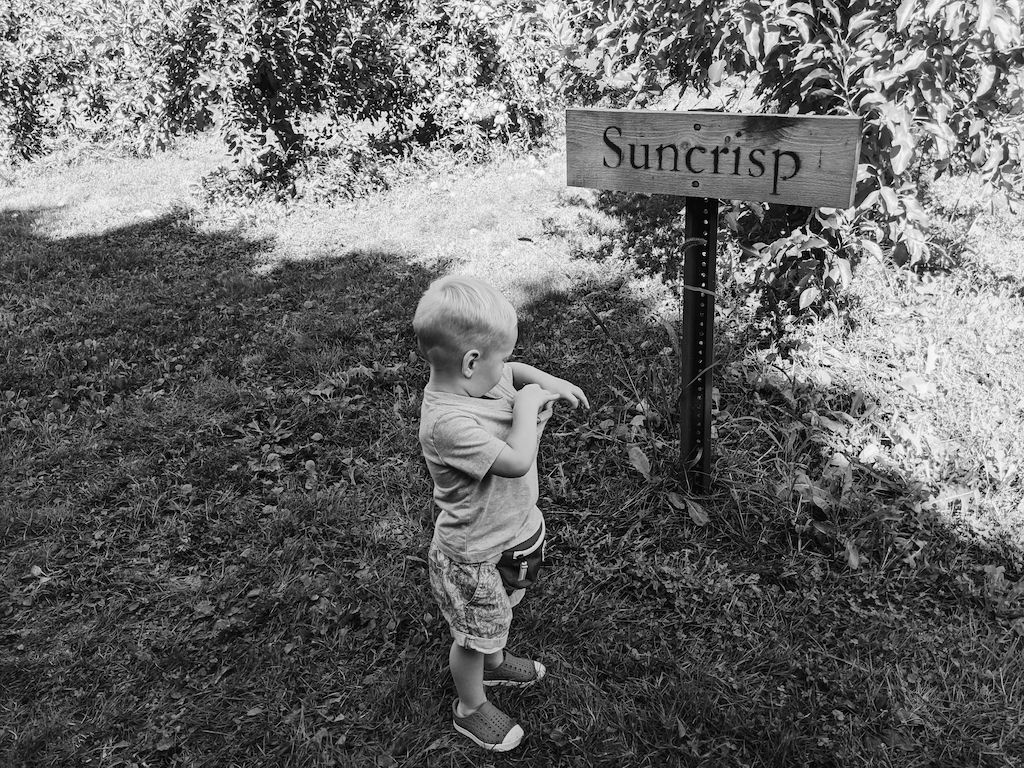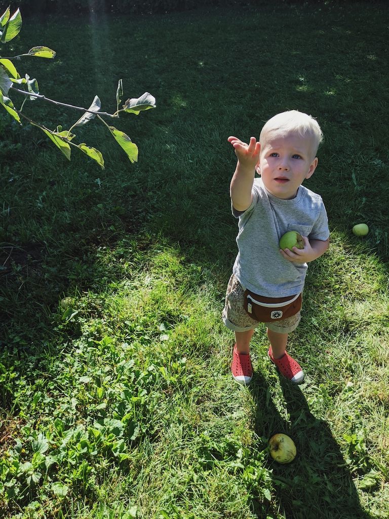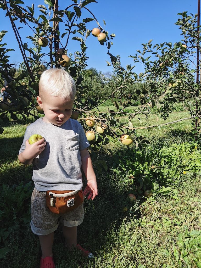 Several weeks ago, an apple orchard trip with the three of us. The orchard we like to visit seems to be busier and busier every year, so we didn't linger. However, we got to ride in a trailer pulled by a tractor (a dream come true for a toddler boy), pick apples, and taste them too, and pick up some apple cider and donuts for a special treat. Cooper absolutely loved it, and still talks about it and asks to go back.