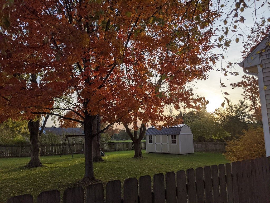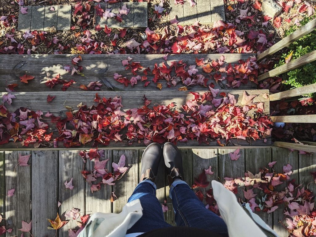 The daily leaf watch: seeing the colors change and the leaves start to fall, peeking at gold and orange and red through all our windows.