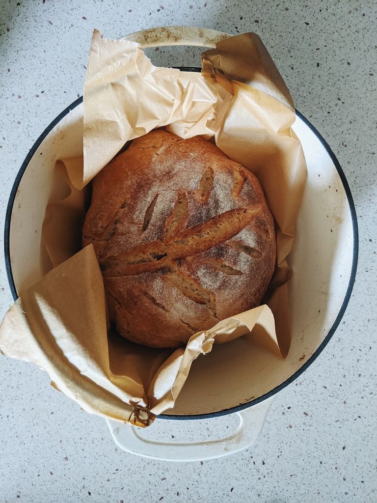 Easing back into sourdough bread baking! A dear friend bakes regularly and gave me some of her starter. We have missed the smell of freshly baked bread in our home. And Cooper finds it so much fun to help me bake. He wears his own apron, too.