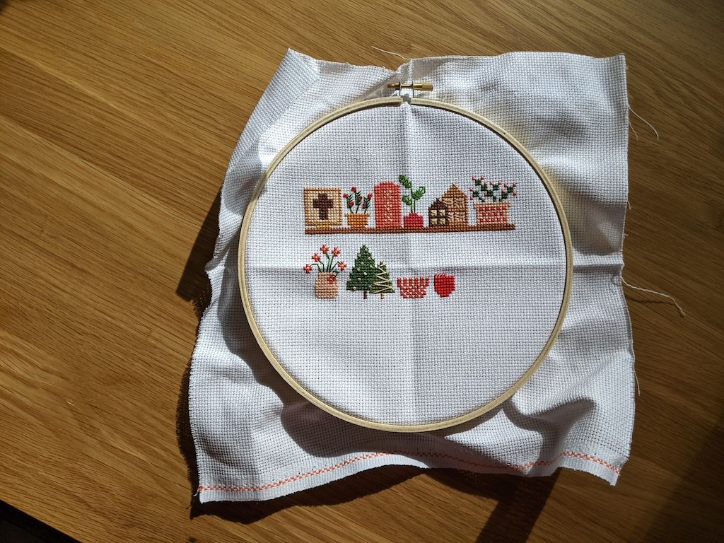 Working on a craft I've barely ventured into since childhood: counted cross stitch. I forgot to mention in my recent post about creative projects that my friend Maeve and I are doing a little stitch-a-long together, using this pattern (she also has kits available). I underestimated how much I would enjoy the process, or how much I would want to work on it a little bit every day. Maeve and I have a few video chats scheduled throughout this month to chat and stitch together, and it's so much fun.