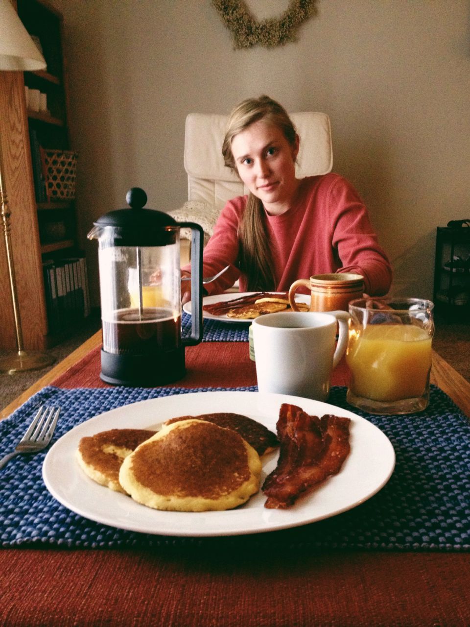Friday morning was low-key, since we took the day off for a wedding in the afternoon, so I made a big breakfast—cornbread buttermilk pancakes and farmer's market bacon—so good, with plenty of leftovers to freeze for quick breakfasts.