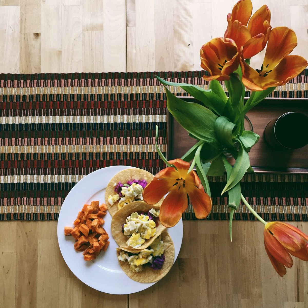 1. Red cabbage is incredibly versatile. I've been eating it in everything: stir fry, tuna salad, breakfast tacos (more on those below). This is a surprise to me, since I usually struggle to use up a new-to-me veggie before it spoils. It is really good quick-pickled: chop the red cabbage, drizzle apple cider vinegar over top, wait five minutes, then add to (nearly) everything for tangy crunch. Plus, I can't get over that beautiful purple color.